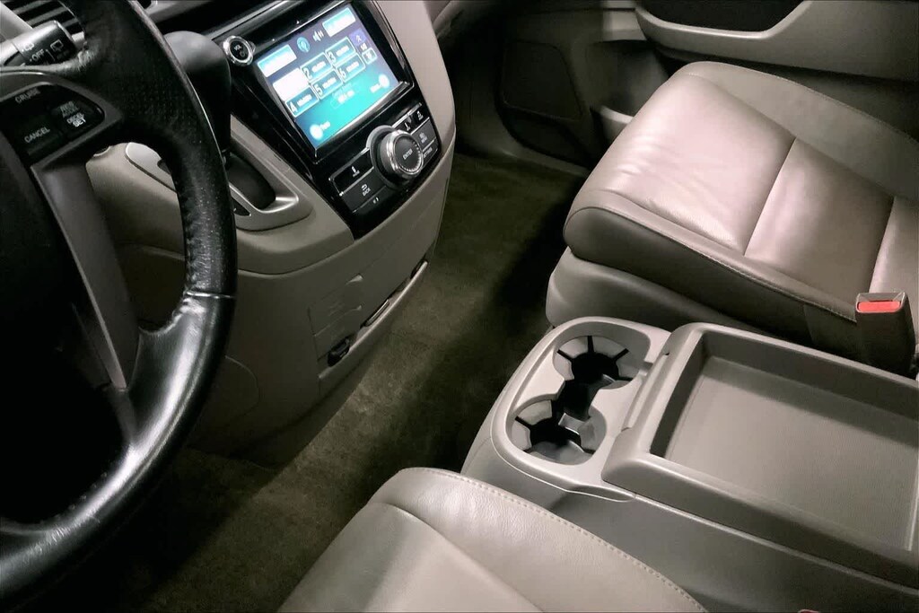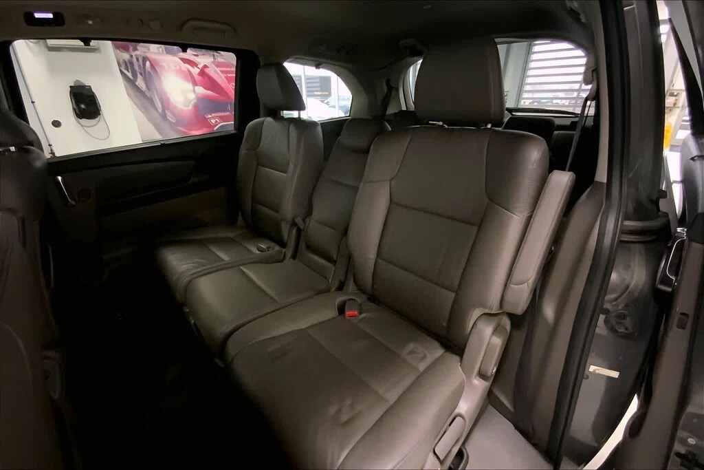 Odyssey EX-L is nicely equipped with 17 x 7 Alloy Wheels, 3rd row seats: split-bench, 4-Wheel Disc Brakes, 4.25 Axle Ratio, 7 Speakers, ABS brakes, Air Conditioning, Alloy wheels, AM/FM radio: XM, Anti-whiplash front head restraints, Auto-dimming Rear-View mirror, Automatic temperature control, Brake assist, Bumpers: body-color, CD player, Delay-off headlights, Driver door bin, Driver vanity mirror, Drivers Seat Mounted Armrest, Dual front impact airbags, Dual front side impact airbags, Electronic Stability Control, Exterior Parking Camera Rear, Four wheel independent suspension, Front anti-roll bar, Front Bucket Seats, Front dual zone A/C, Front reading lights, Fully automatic headlights, Garage door transmitter: HomeLink, Heated door mirrors, Heated Front Bucket Seats, Heated front seats, Illuminated entry, Leather Seat Trim, Leather Shift Knob, Leather steering wheel, Low tire pressure warning, Occupant sensing airbag, Outside temperature display, Overhead airbag, Overhead console, Panic alarm, Passenger door bin, Passenger seat mounted armrest, Passenger vanity mirror, Power door mirrors, Power driver seat, Power Liftgate, Power moonroof, Power passenger seat, Power steering, Power windows, Radio data system, Rear air conditioning, Rear reading lights, Rear seat center armrest, Rear window defroster, Rear window wiper, Reclining 3rd row seat, Remote keyless entry, Security system, Speed control, Speed-sensing steering, Speed-Sensitive Wipers, Split folding rear seat, Spoiler, Steering wheel mounted audio controls, Tachometer, Telescoping steering wheel, Tilt steering wheel, Traction control, Trip computer, and Variably intermittent wipers.