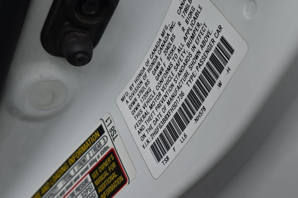 White 2015 Honda Civic EX FWD CVT 1.8L I4 SOHC 16V i-VTEC