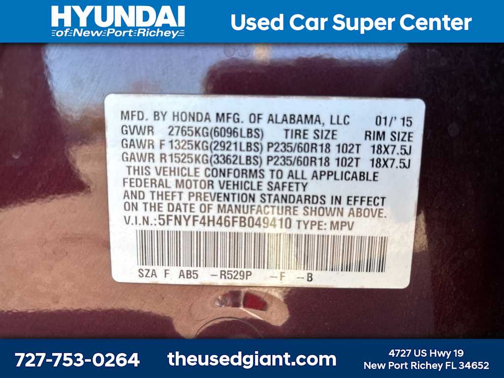 CARFAX One-Owner. 2015 Honda Pilot EX 4WD 3.5L V6 24V SOHC i-VTEC 5-Speed Automatic