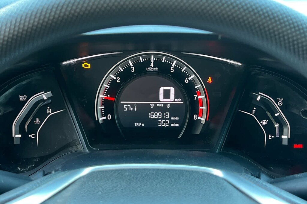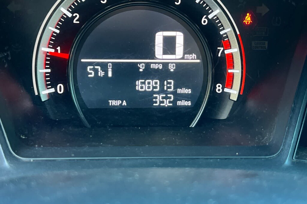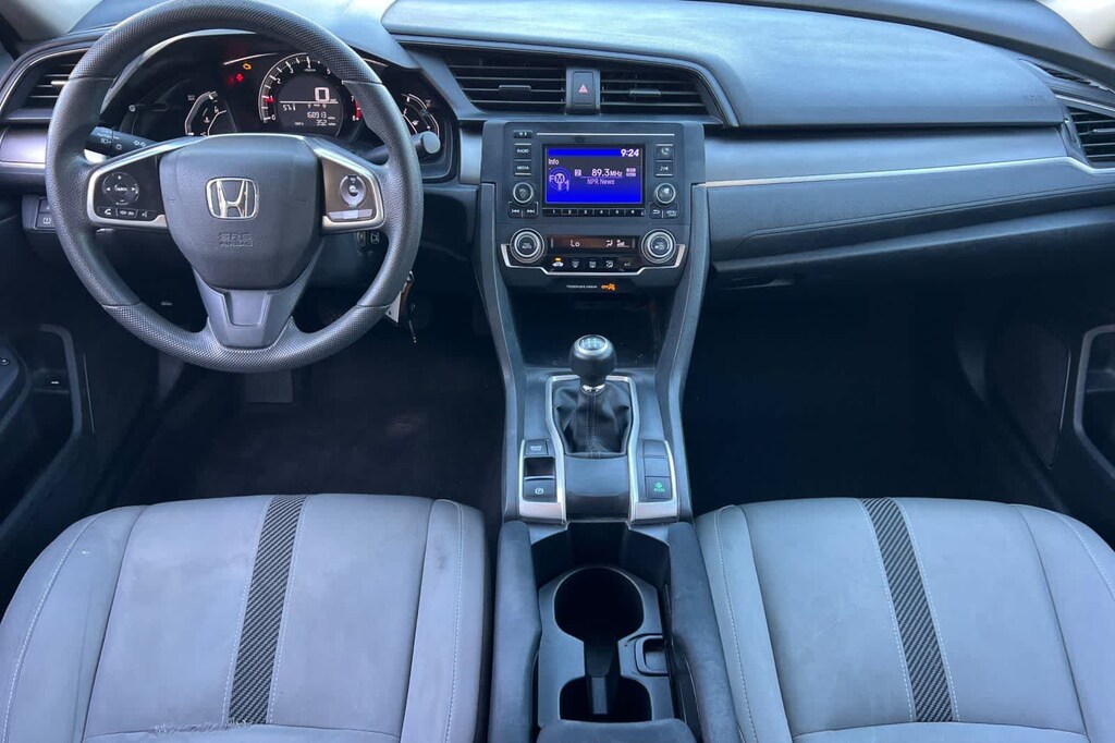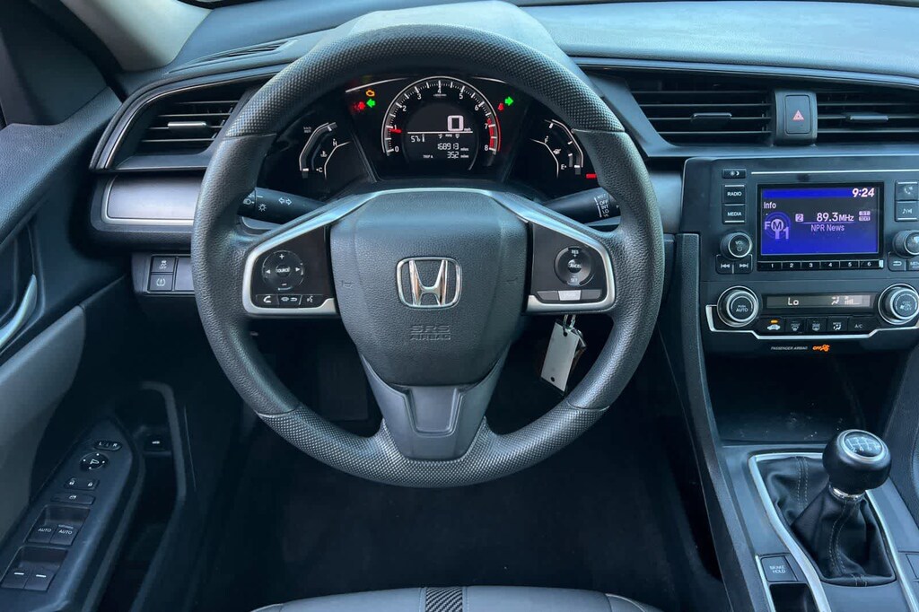 This Civic LX is finished in the Gray exterior paint and Tan/Tan Cloth interior.