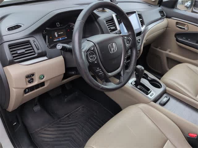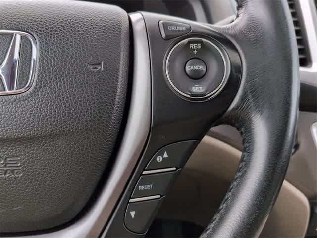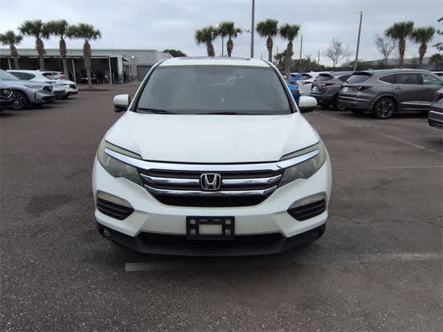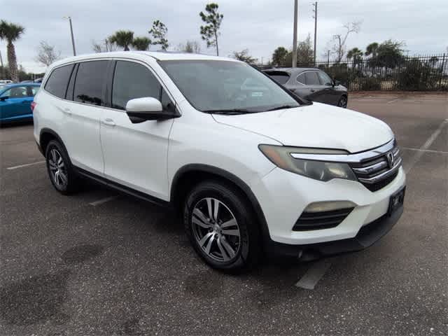 This 2016 Honda Pilot EX-L in White, features 18 Alloy Wheels, 3rd row seats: split-bench, 4-Wheel Disc Brakes, 4.25 Axle Ratio, 7 Speakers, ABS brakes, Air Conditioning, Alloy wheels, AM/FM radio: SiriusXM, Auto-dimming Rear-View mirror, Automatic temperature control, Brake assist, Bumpers: body-color, Compass, Delay-off headlights, Driver door bin, Driver vanity mirror, Dual front impact airbags, Dual front side impact airbags, Electronic Stability Control, Emergency communication system: HondaLink Assist, Exterior Parking Camera Rear, Four wheel independent suspension, Front anti-roll bar, Front Bucket Seats, Front Center Armrest, Front dual zone A/C, Front fog lights, Front reading lights, Fully automatic headlights, Garage door transmitter: HomeLink, Heated door mirrors, Heated Front Bucket Seats, Heated front seats, Illuminated entry, Leather Shift Knob, Leather-Trimmed Seats, Low tire pressure warning, Navigation System, Occupant sensing airbag, Outside temperature display, Overhead airbag, Overhead console, Panic alarm, Passenger door bin, Passenger vanity mirror, Power door mirrors, Power driver seat, Power Liftgate, Power moonroof, Power passenger seat, Power steering, Power windows, Radio data system, Radio: AM/FM Audio System, Rear air conditioning, Rear anti-roll bar, Rear reading lights, Rear seat center armrest, Rear window defroster, Rear window wiper, Remote keyless entry, Security system, SiriusXM Radio, Speed control, Speed-sensing steering, Speed-Sensitive Wipers, Split folding rear seat, Spoiler, Steering wheel mounted audio controls, Tachometer, Telescoping steering wheel, Tilt steering wheel, Traction control, Trip computer, and Variably intermittent wipers: