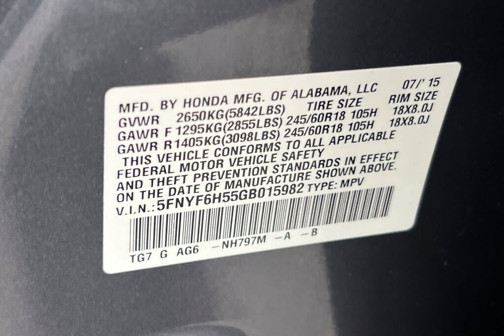 Gray 2016 Honda Pilot EX-L AWD 6-Speed Automatic 3.5L V6 24V SOHC i-VTEC AWD.