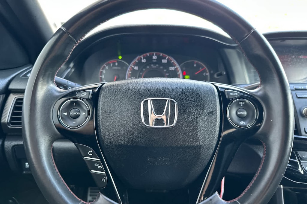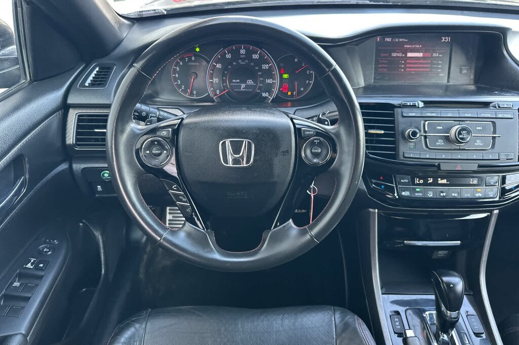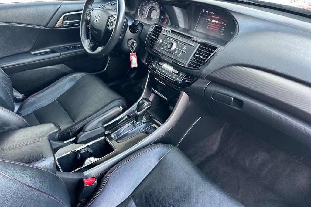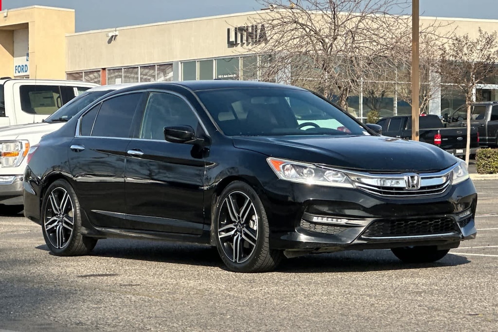 Lithia Ford and Lincoln of Fresno is pleased to offer this Crystal Black Pearl 2017 Honda Accord Sport Special Edition for purchase, this vehicle is well equipped with many features including: Black w/Leather-Trimmed Seats, 19 Alloy Wheels, 4 Speakers, 4-Wheel Disc Brakes, ABS brakes, Air Conditioning, Alloy wheels, AM/FM radio, Automatic temperature control, Brake assist, Bumpers: body-color, CD player, Delay-off headlights, Driver door bin, Driver vanity mirror, Dual front impact airbags, Dual front side impact airbags, Electronic Stability Control, Exterior Parking Camera Rear, Four wheel independent suspension, Front anti-roll bar, Front Bucket Seats, Front Center Armrest, Front dual zone A/C, Front fog lights, Front reading lights, Fully automatic headlights, Heated Front Bucket Seats, Heated front seats, Illuminated entry, Leather Shift Knob, Leather-Trimmed Seats, Low tire pressure warning, Occupant sensing airbag, Outside temperature display, Overhead airbag, Overhead console, Panic alarm, Passenger door bin, Passenger vanity mirror, Power door mirrors, Power driver seat, Power steering, Power windows, Radio data system, Radio: 160-Watt AM/FM Audio System, Rear anti-roll bar, Rear seat center armrest, Rear window defroster, Remote keyless entry, Security system, Speed control, Speed-sensing steering, Speed-Sensitive Wipers, Split folding rear seat, Spoiler, Steering wheel mounted audio controls, Tachometer, Telescoping steering wheel, Tilt steering wheel, Traction control, Trip computer, and Variably intermittent wipers. FWD 2.4L I4 DOHC i-VTEC 16V CVT Sport Special Edition