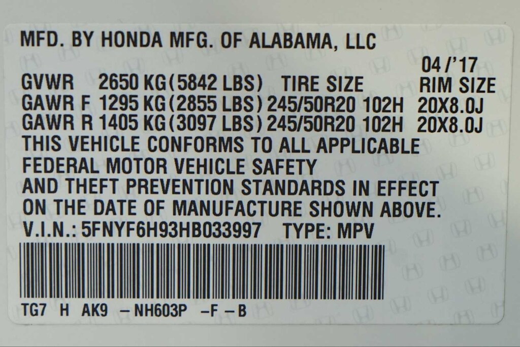 - Front tires: 245/50HR20.0