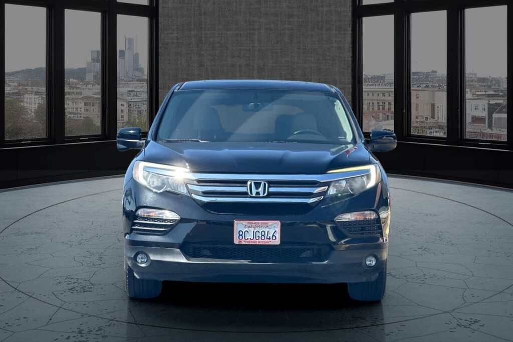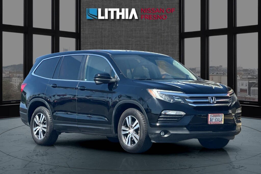 Clean CARFAX. 2017 Honda Pilot EX-L 3.5L V6 24V SOHC i-VTEC 6-Speed Automatic FWD 18 Alloy Wheels, 3rd row seats: split-bench, 4-Wheel Disc Brakes, 4.25 Axle Ratio, 7 Speakers, ABS brakes, Air Conditioning, Alloy wheels, AM/FM radio: SiriusXM, Apple CarPlay/Android Auto, Auto-dimming Rear-View mirror, Automatic temperature control, Brake assist, Bumpers: body-color, Compass, Delay-off headlights, Driver door bin, Driver vanity mirror, Dual front impact airbags, Dual front side impact airbags, Electronic Stability Control, Emergency communication system: HondaLink Assist, Exterior Parking Camera Rear, Four wheel independent suspension, Front anti-roll bar, Front Bucket Seats, Front Center Armrest, Front dual zone A/C, Front fog lights, Front reading lights, Fully automatic headlights, Garage door transmitter: HomeLink, Heated Front Bucket Seats, Heated front seats, Illuminated entry, Leather Shift Knob, Leather-Trimmed Seats, Low tire pressure warning, Occupant sensing airbag, Outside temperature display, Overhead airbag, Overhead console, Panic alarm, Passenger door bin, Passenger vanity mirror, Power door mirrors, Power driver seat, Power Liftgate, Power moonroof, Power passenger seat, Power steering, Power windows, Radio data system, Radio: AM/FM Audio System, Rear air conditioning, Rear anti-roll bar, Rear reading lights, Rear seat center armrest, Rear window defroster, Rear window wiper, Remote keyless entry, Security system, SiriusXM Radio, Speed control, Speed-sensing steering, Speed-Sensitive Wipers, Split folding rear seat, Spoiler, Steering wheel mounted audio controls, Tachometer, Telescoping steering wheel, Tilt steering wheel, Traction control, Trip computer, Variably intermittent wipers, Manager??s Special, Service Records Available, ** Fresh Oil Change, ** Smog Inspection Performed, ** Engine Air Filter Replaced, ** In Cabin Air Filter Replaced, Interior and Exterior Professionally Detailed for Delivery, Great Value, LITHIAS 60 DAY 3000 MILE LIMITED WARRANTY APPLIES, Certified by Carfax - No Accidents, Prior Lease Vehicle, ** BACK UP CAMERA, ** BLUETOOTH, HANDS-FREE, ** KEYLESS ENTRY, ** REARVIEW CAMERA, ** SERVICE RECORDS AVAILABLE, ** STEERING WHEEL CONTROLS, PRE OWNED, USED CAR, MANAGERS SPECIAL, SERVICE RECORDS AVAILABLE.