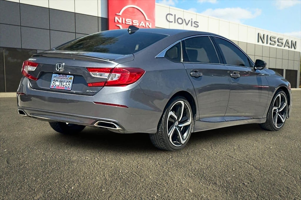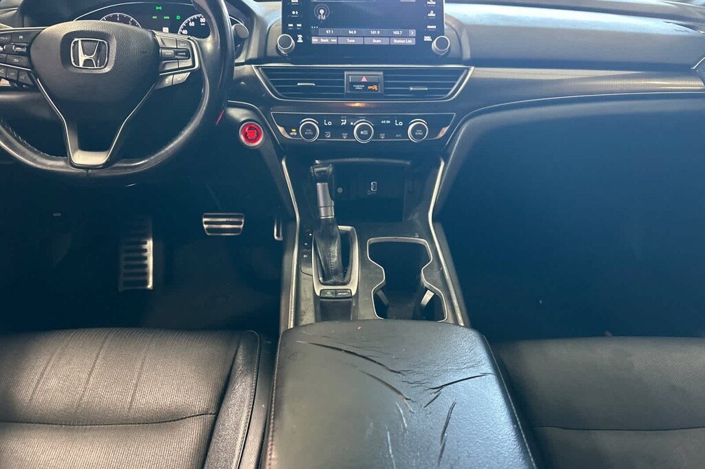This Accord Sport is finished in the Modern Steel Metallic exterior paint and Black Cloth interior.