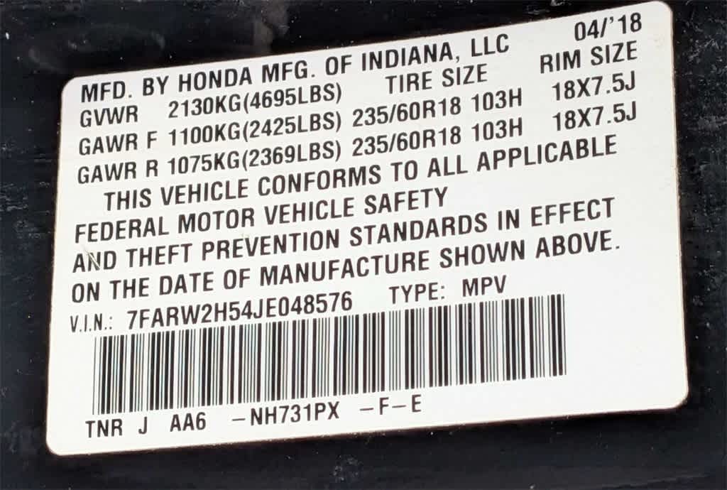 2018 Honda CR-V EX AWD 27/33 City/Highway MPG