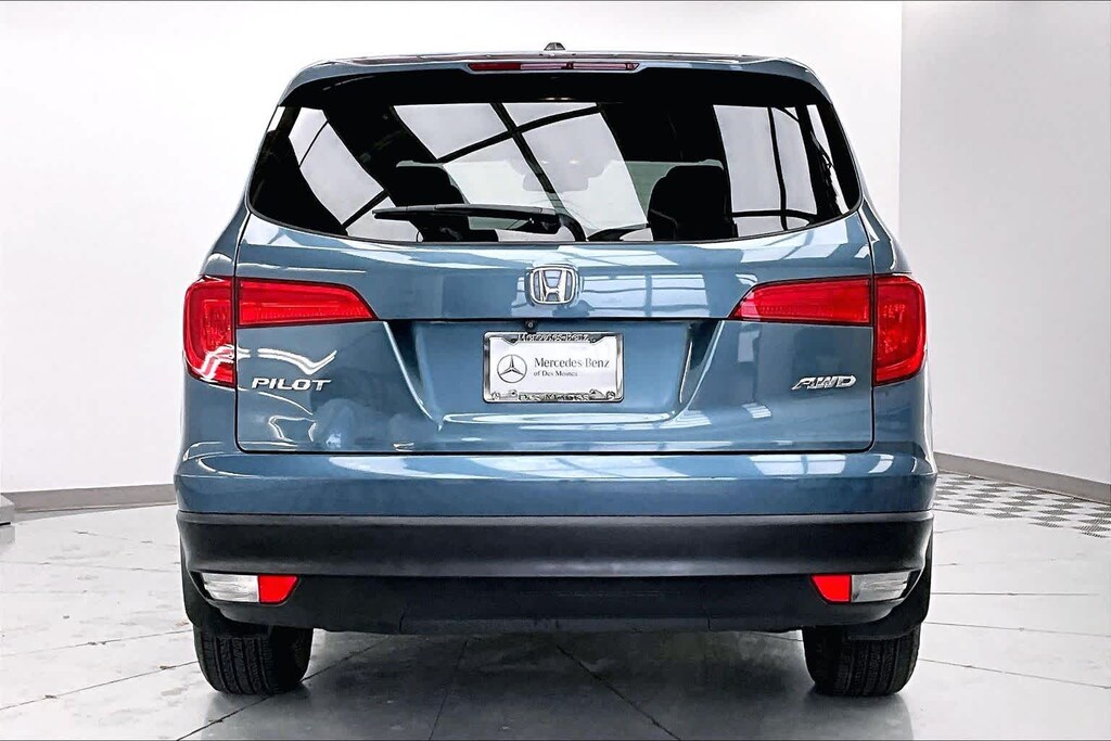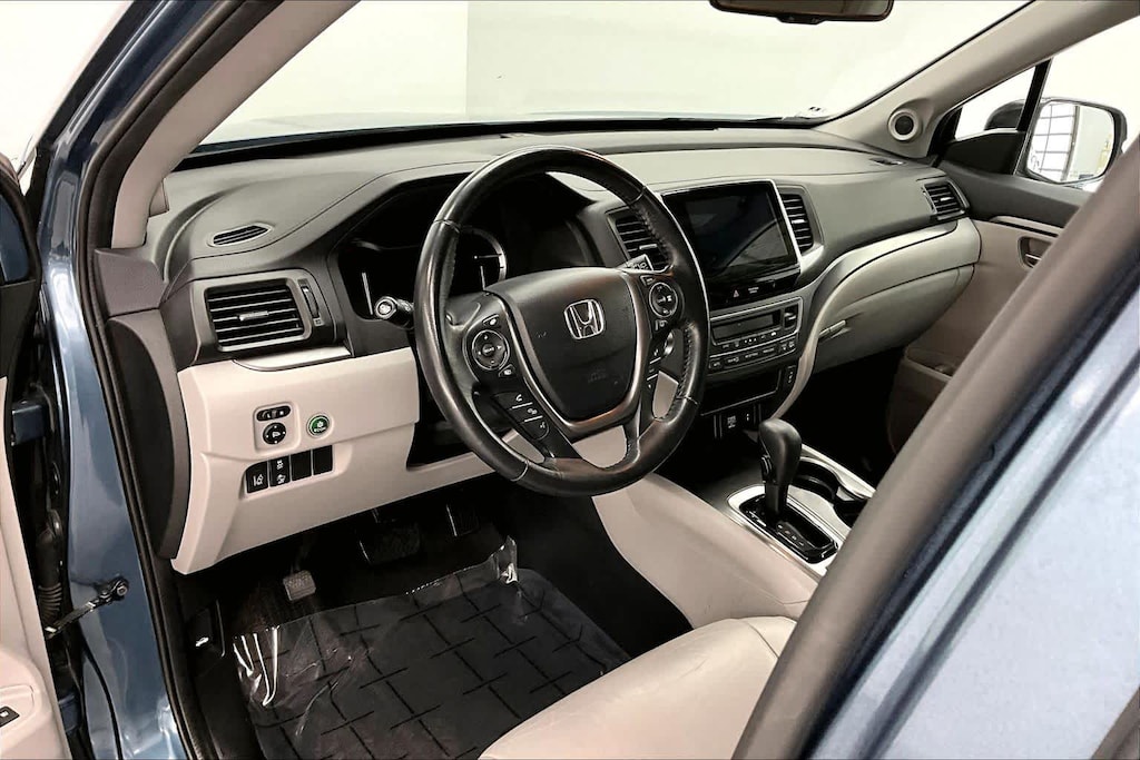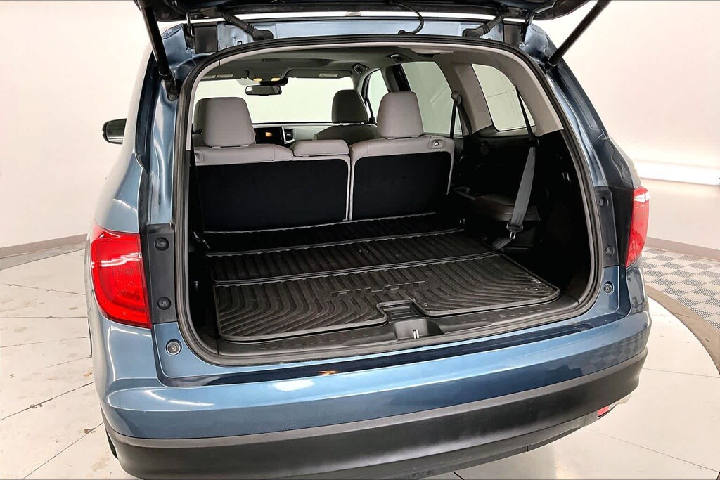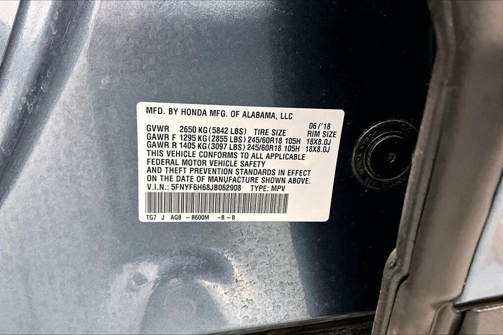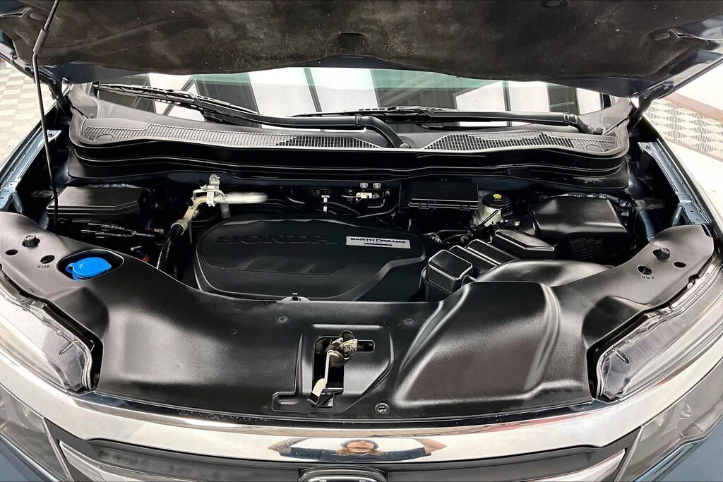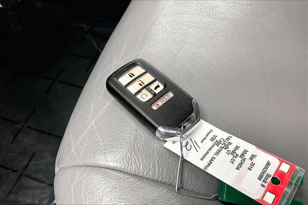 Pilot EX-L w/Honda Sensing, 3.5L V6 24V SOHC i-VTEC, AWD, 7 Speakers, 18 Alloy Wheels, 3rd row seats: split-bench, 4-Wheel Disc Brakes, 4.25 Axle Ratio, ABS brakes, Air Conditioning, Alloy wheels, AM/FM radio: SiriusXM, Apple CarPlay/Android Auto, Auto-dimming Rear-View mirror, Automatic temperature control, Brake assist, Bumpers: body-color, Compass, Delay-off headlights, Driver door bin, Driver vanity mirror, Dual front impact airbags, Dual front side impact airbags, Electronic Stability Control, Exterior Parking Camera Rear, Four wheel independent suspension, Front anti-roll bar, Front Bucket Seats, Front Center Armrest, Front dual zone A/C, Front fog lights, Front reading lights, Fully automatic headlights, Garage door transmitter: HomeLink, Heated door mirrors, Heated Front Bucket Seats, Heated front seats, Illuminated entry, Leather Shift Knob, Leather-Trimmed Seats, Low tire pressure warning, Occupant sensing airbag, Outside temperature display, Overhead airbag, Overhead console, Panic alarm, Passenger door bin, Passenger vanity mirror, Power door mirrors, Power driver seat, Power Liftgate, Power moonroof, Power passenger seat, Power steering, Power windows, Radio data system, Radio: AM/FM Audio System, Rear air conditioning, Rear anti-roll bar, Rear reading lights, Rear seat center armrest, Rear window defroster, Rear window wiper, Remote keyless entry, Security system, SiriusXM Radio, Speed control, Speed-sensing steering, Speed-Sensitive Wipers, Split folding rear seat, Spoiler, Steering wheel mounted audio controls, Tachometer, Telescoping steering wheel, Tilt steering wheel, Traction control, Trip computer, and Variably intermittent wipers. Local Trade, Pilot EX-L w/Honda Sensing, 3.5L V6 24V SOHC i-VTEC, AWD, 7 Speakers.