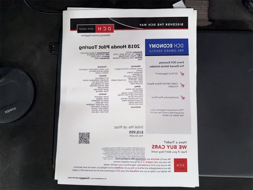 Modern Steel Metallic 2018 Honda Pilot Touring AWD 9-Speed Automatic 3.5L V6 24V SOHC i-VTEC AWD.