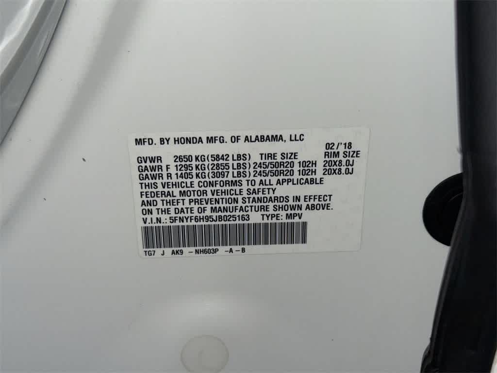 White 2018 Honda Pilot Touring AWD 9-Speed Automatic 3.5L V6 24V SOHC i-VTEC AWD.