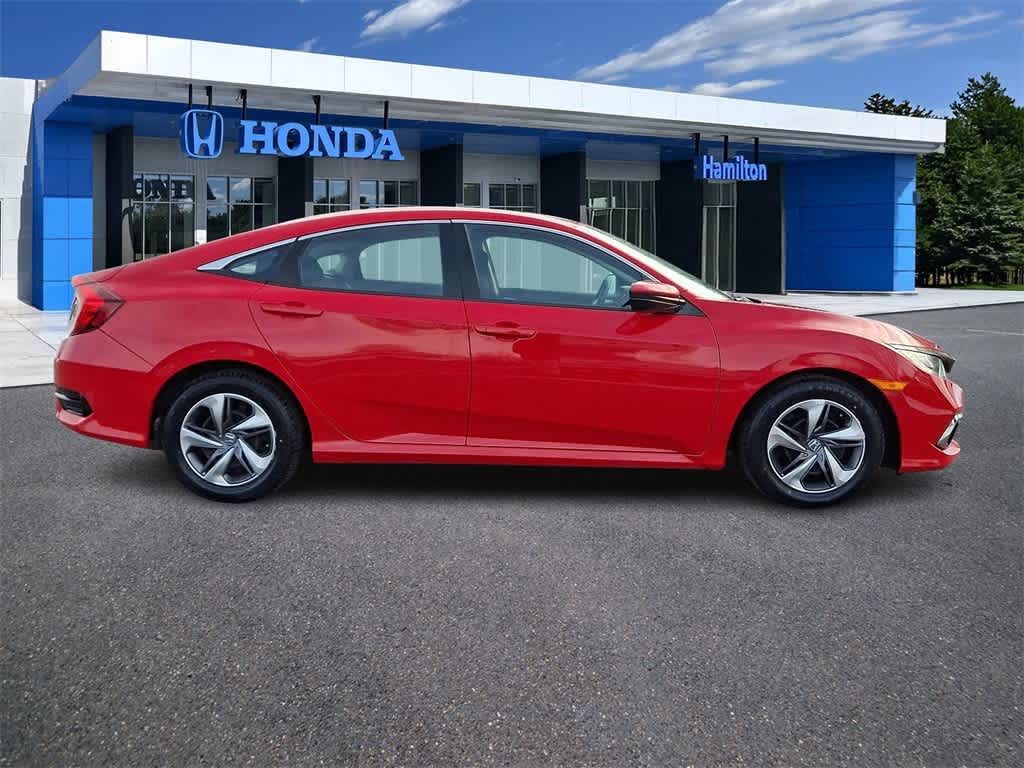 Hamilton Honda is proud to offer this wonderful-looking 2019 Honda Civic in Red. This vehicle comes with the following features; Price does not include licensing costs, registration fees, taxes and dealer doc fee of $999 which are to be paid by the consumer. ***Rear Back Up Camera***, ***Low Mileage***, *** Lifetime Car Washes***, Civic LX, 4D Sedan, 2.0L I4 DOHC 16V i-VTEC, CVT, FWD, Red, Black Cloth.