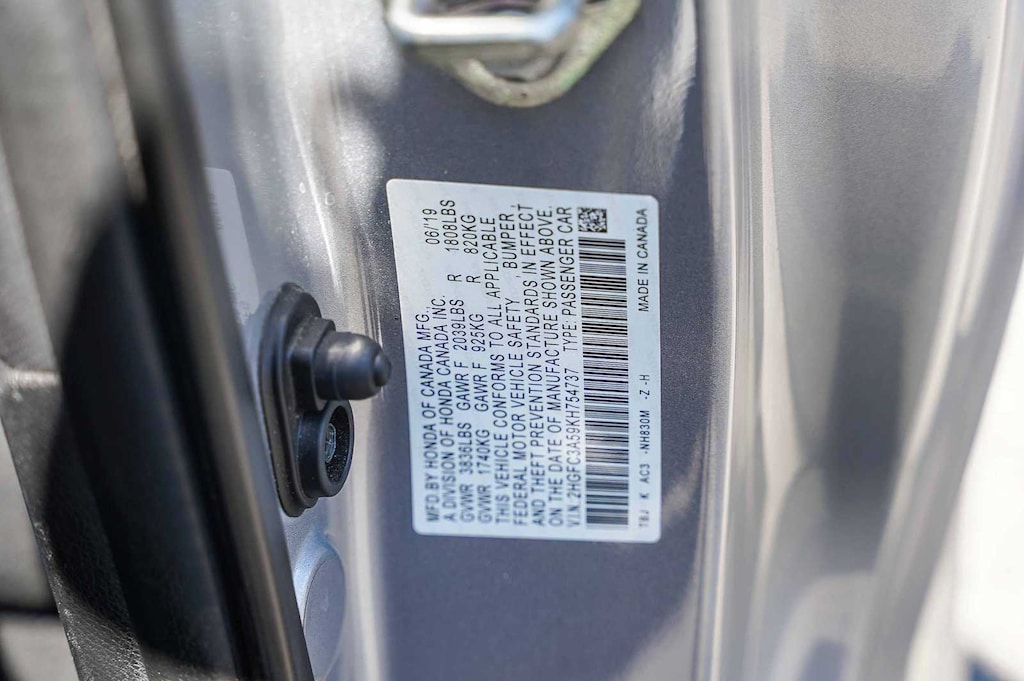 Blk/Black Cloth, 10 Speakers, 18 Machine-Finished Alloy Wheels, 4-Wheel Disc Brakes, ABS brakes, Air Conditioning, Alloy wheels, AM/FM radio: SiriusXM, Apple CarPlay/Android Auto, Automatic temperature control, Brake assist, Bumpers: body-color, Cloth Seat Trim, Delay-off headlights, Driver door bin, Driver vanity mirror, Dual front impact airbags, Dual front side impact airbags, Electronic Stability Control, Emergency communication system: HondaLink, Exterior Parking Camera Rear, Four wheel independent suspension, Front anti-roll bar, Front Bucket Seats, Front Center Armrest, Front dual zone A/C, Front fog lights, Front reading lights, Fully automatic headlights, Heated door mirrors, Heated Front Bucket Seats, Heated front seats, Illuminated entry, Leather Shift Knob, Low tire pressure warning, Occupant sensing airbag, Outside temperature display, Overhead airbag, Panic alarm, Passenger door bin, Passenger vanity mirror, Power door mirrors, Power moonroof, Power steering, Power windows, Radio data system, Radio: 450-Watt AM/FM/HD/SiriusXM Audio System, Rear anti-roll bar, Rear window defroster, Remote keyless entry, Security system, Speed control, Speed-sensing steering, Speed-Sensitive Wipers, Split folding rear seat, Spoiler, Steering wheel mounted audio controls, Tachometer, Telescoping steering wheel, Tilt steering wheel, Traction control, Trip computer, and Variably intermittent wipers. Blk/Black Cloth. 1.5L I-4 DI DOHC Turbocharged 6-Speed Manual FWD