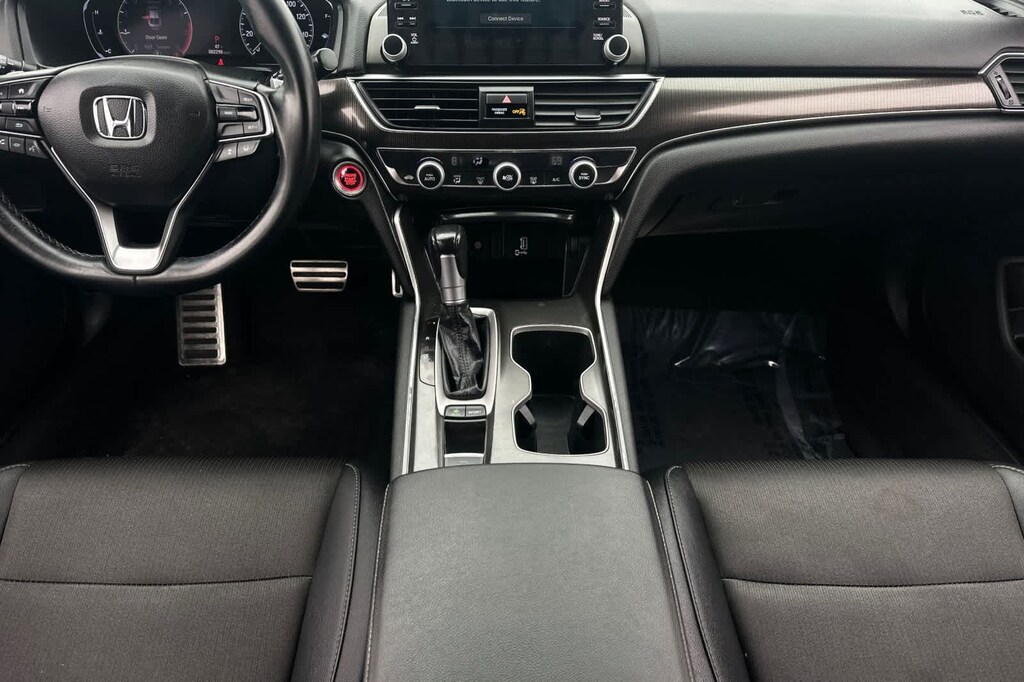 This Accord Sport is finished in the Platinum White Pearl exterior paint and Black Cloth interior.