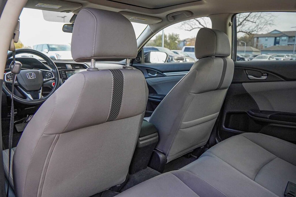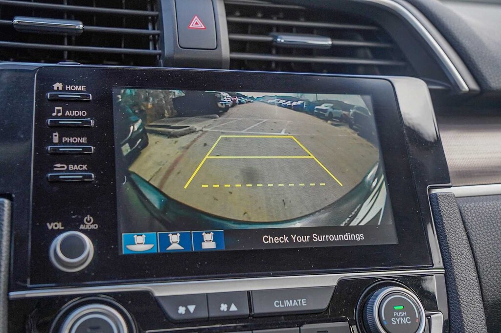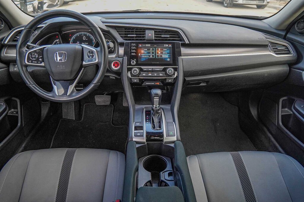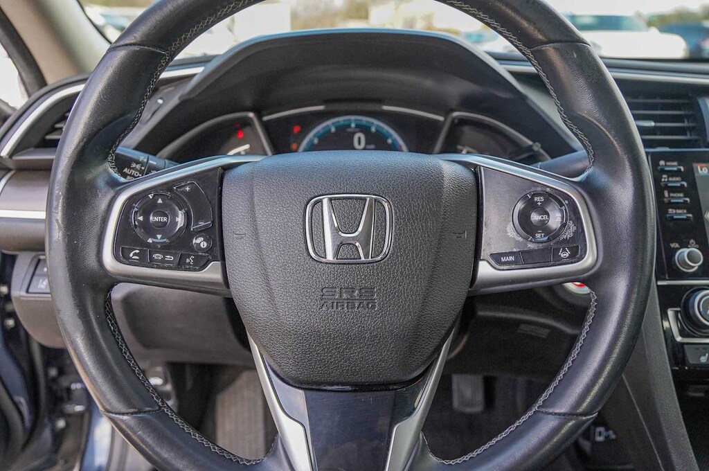 Civic EX, FWD, Cosmic Blue Metallic, Gray Cloth, 4-Wheel Disc Brakes, 8 Speakers, ABS brakes, Adaptive Cruise Control: Adaptive Cruise Control (ACC) with Low-Speed Follow, Air Conditioning, Alloy wheels, AM/FM radio: SiriusXM, Apple CarPlay/Android Auto, Auto High-beam Headlights, Automatic temperature control, Brake assist, Bumpers: body-color, Cloth Seat Trim, Delay-off headlights, Driver door bin, Driver vanity mirror, Dual front impact airbags, Dual front side impact airbags, Electronic Stability Control, Emergency communication system: HondaLink, Exterior Parking Camera Rear, Forward collision: Collision Mitigation Braking System (CMBS) + FCW mitigation, Four wheel independent suspension, Front anti-roll bar, Front Bucket Seats, Front Center Armrest, Front dual zone A/C, Front fog lights, Front reading lights, Fully automatic headlights, Heated door mirrors, Heated Front Bucket Seats, Heated Front Seats, Illuminated entry, Lane departure: Lane Keeping Assist System (LKAS) active, Leather Shift Knob, Low tire pressure warning, Occupant sensing airbag, Outside temperature display, Overhead airbag, Overhead console, Panic alarm, Passenger door bin, Passenger vanity mirror, Power door mirrors, Power driver seat, Power moonroof, Power steering, Power windows, Radio data system, Radio: 180-Watt AM/FM/HD/SiriusXM Audio System, Rear anti-roll bar, Rear seat center armrest, Rear window defroster, Remote keyless entry, Security system, Speed control, Speed-sensing steering, Speed-Sensitive Wipers, Split Folding Fear Seat, Spoiler, Steering wheel mounted audio controls, Tachometer, Telescoping steering wheel, Tilt steering wheel, Traction control, Trip computer, Variably intermittent wipers, Civic EX, FWD, Cosmic Blue Metallic, Gray Cloth.