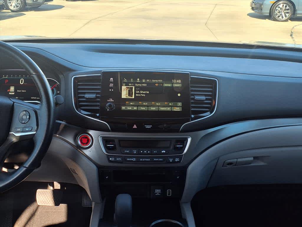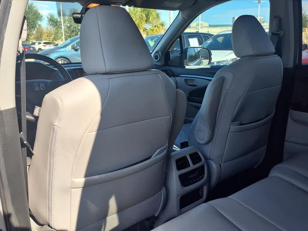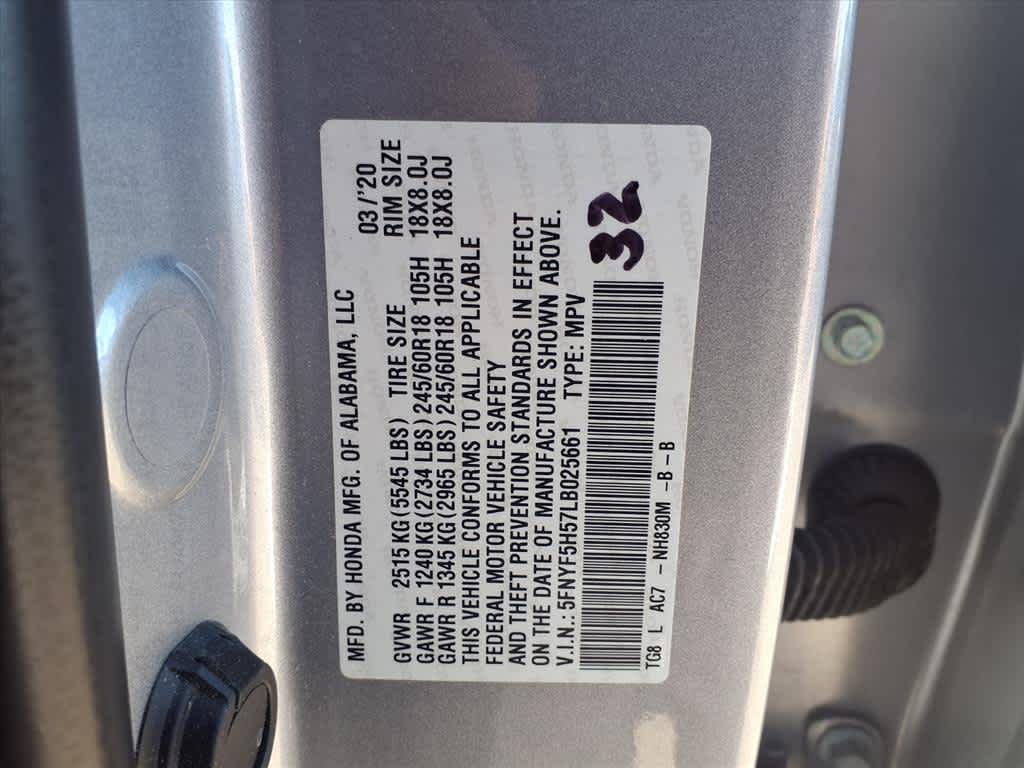 18 Machine-Finished Alloy Wheels, 3rd row seats: split-bench, 4-Wheel Disc Brakes, 4.25 Axle Ratio, 7 Speakers, A/V remote: CabinControl, ABS brakes, Air Conditioning, Alloy wheels, AM/FM radio: SiriusXM, Apple CarPlay/Android Auto, Auto High-beam Headlights, Auto-dimming Rear-View mirror, Automatic temperature control, Blind Spot Information (BSI) System warning, Brake assist, Bumpers: body-color, Delay-off headlights, Driver door bin, Driver vanity mirror, Dual front impact airbags, Dual front side impact airbags, Electronic Stability Control, Emergency communication system: HondaLink Assist, Exterior Parking Camera Rear, Forward collision: Collision Mitigation Braking System (CMBS) + FCW mitigation, Four wheel independent suspension, Front anti-roll bar, Front Bucket Seats, Front Center Armrest, Front dual zone A/C, Front fog lights, Front reading lights, Fully automatic headlights, Garage door transmitter: HomeLink, Heated door mirrors, Heated Front Bucket Seats, Heated front seats, Illuminated entry, Lane departure: Lane Keeping Assist System (LKAS) active, Leather Seat Trim, Leather Shift Knob, Low tire pressure warning, Memory seat, Occupant sensing airbag, Outside temperature display, Overhead airbag, Overhead console, Panic alarm, Passenger door bin, Passenger vanity mirror, Power door mirrors, Power driver seat, Power Liftgate, Power moonroof, Power passenger seat, Power steering, Power windows, Radio data system, Radio: 215-Watt Audio System, Rear air conditioning, Rear anti-roll bar, Rear reading lights, Rear seat center armrest, Rear window defroster, Rear window wiper, Reclining 3rd row seat, Remote keyless entry, Security system, Speed control, Speed-sensing steering, Speed-Sensitive Wipers, Split folding rear seat, Spoiler, Steering wheel mounted audio controls, Tachometer, Telescoping steering wheel, Tilt steering wheel, Traction control, Trip computer, Turn signal indicator mirrors, Variably intermittent wipers.