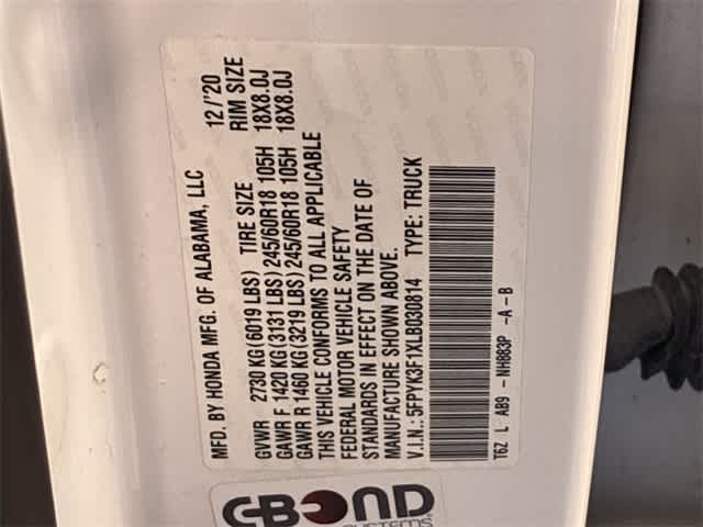 Platinum White Pearl 2020 Honda Ridgeline Sport AWD 9-Speed Automatic 3.5L V6 SOHC i-VTEC 24V