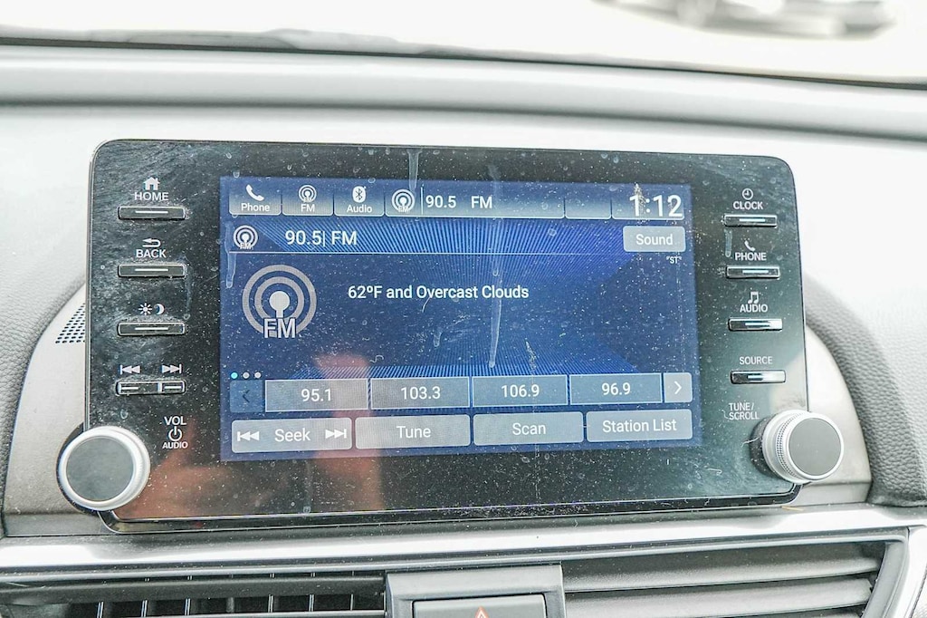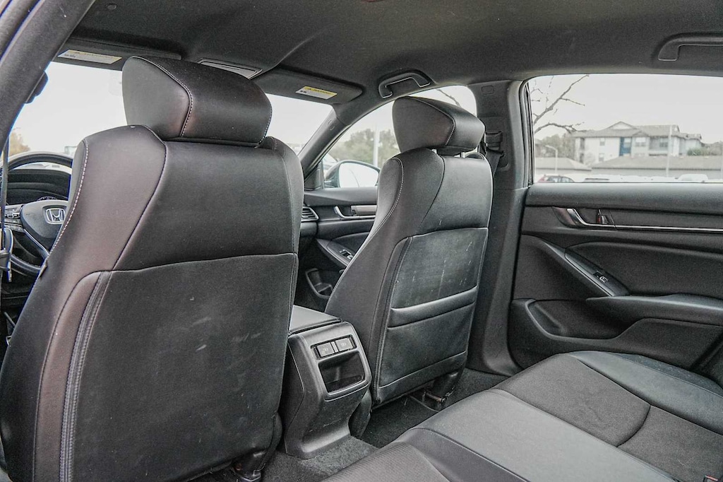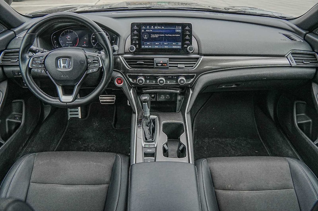 Accord Sport, Crystal Black Pearl, Black Cloth, 4-Wheel Disc Brakes, 8 Speakers, ABS brakes, Adaptive Cruise Control: Adaptive Cruise Control (ACC) with Low-Speed Follow, Air Conditioning, Alloy wheels, AM/FM radio, Apple CarPlay/Android Auto, Auto High-beam Headlights, Automatic temperature control, Brake assist, Bumpers: body-color, Cloth Seat Trim, Delay-off headlights, Driver door bin, Driver vanity mirror, Dual front impact airbags, Dual front side impact airbags, Electronic Stability Control, Emergency communication system: HondaLink, Exterior Parking Camera Rear, Forward collision: Collision Mitigation Braking System (CMBS) + FCW mitigation, Four wheel independent suspension, Front anti-roll bar, Front Bucket Seats, Front Center Armrest, Front dual zone A/C, Front fog lights, Front reading lights, Fully automatic headlights, Illuminated entry, Knee airbag, Lane Departure Warning System, Leather Shift Knob, Leather steering wheel, Low tire pressure warning, Occupant sensing airbag, Outside temperature display, Overhead airbag, Overhead console, Panic alarm, Passenger door bin, Passenger vanity mirror, Power door mirrors, Power driver seat, Power steering, Power windows, Radio data system, Radio: 180-Watt AM/FM Audio System, Rear anti-roll bar, Rear seat center armrest, Rear window defroster, Remote keyless entry, Security system, Speed control, Speed-sensing steering, Speed-Sensitive Wipers, Split Folding Fear Seat, Spoiler, Steering wheel mounted audio controls, Tachometer, Telescoping steering wheel, Tilt steering wheel, Traction control, Trip computer, Variably intermittent wipers, Wheels: 19 Machine-Finished Alloy w/Black Inserts, Accord Sport, Crystal Black Pearl, Black Cloth.
