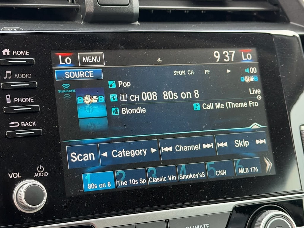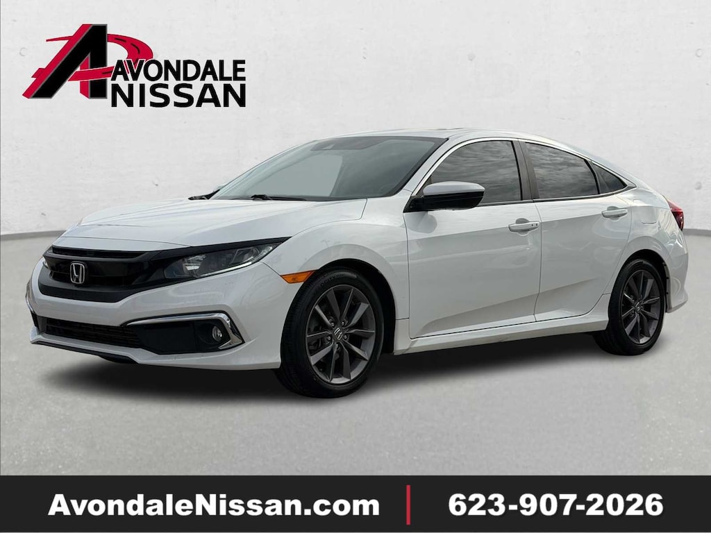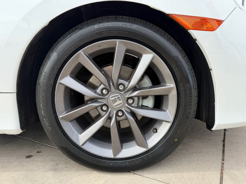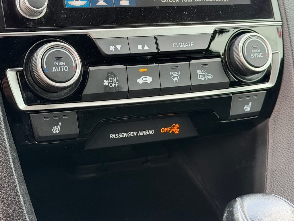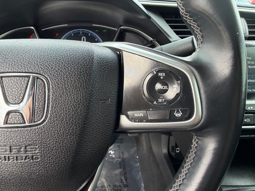 Gray Cloth, 17 Alloy Wheels, 4-Wheel Disc Brakes, 8 Speakers, ABS brakes, Adaptive Cruise Control: Adaptive Cruise Control (ACC) with Low-Speed Follow, Air Conditioning, Alloy wheels, AM/FM radio: SiriusXM, Apple CarPlay/Android Auto, Auto High-beam Headlights, Automatic temperature control, Brake assist, Bumpers: body-color, Cloth Seat Trim, Delay-off headlights, Driver door bin, Driver vanity mirror, Dual front impact airbags, Dual front side impact airbags, Electronic Stability Control, Emergency communication system: HondaLink, Exterior Parking Camera Rear, Forward collision: Collision Mitigation Braking System (CMBS) + FCW mitigation, Four wheel independent suspension, Front anti-roll bar, Front Bucket Seats, Front Center Armrest, Front dual zone A/C, Front fog lights, Front reading lights, Fully automatic headlights, Heated door mirrors, Heated Front Bucket Seats, Heated front seats, Illuminated entry, Lane departure: Lane Keeping Assist System (LKAS) active, Leather Shift Knob, Low tire pressure warning, Occupant sensing airbag, Outside temperature display, Overhead airbag, Overhead console, Panic alarm, Passenger door bin, Passenger vanity mirror, Power door mirrors, Power driver seat, Power moonroof, Power steering, Power windows, Radio data system, Radio: 180-Watt AM/FM/HD/SiriusXM Audio System, Rear anti-roll bar, Rear seat center armrest, Rear window defroster, Remote keyless entry, Security system, Speed control, Speed-sensing steering, Speed-Sensitive Wipers, Split folding rear seat, Spoiler, Steering wheel mounted audio controls, Tachometer, Telescoping steering wheel, Tilt steering wheel, Traction control, Trip computer, and Variably intermittent wipers. White 2021 Honda Civic EX FWD CVT 1.5L I-4 DI DOHC Turbocharged Gray Cloth.