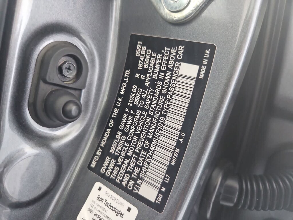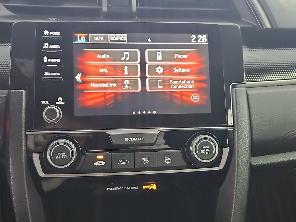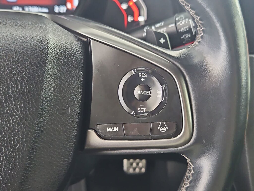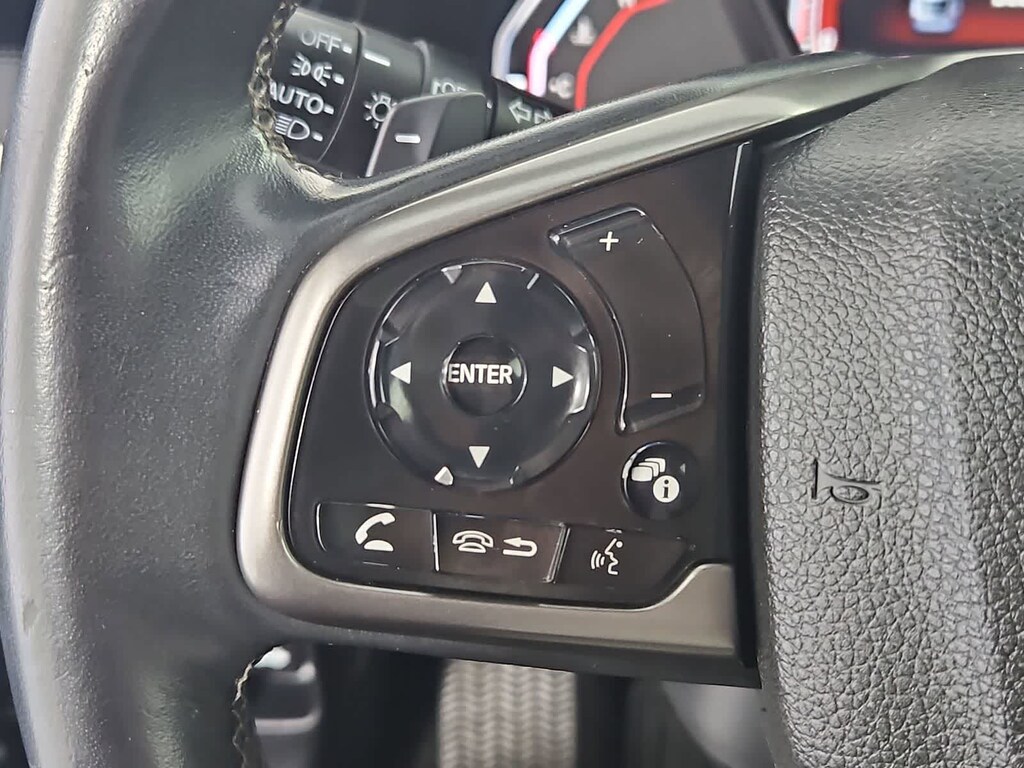 Cloth, 18 Alloy Wheels, 4-Wheel Disc Brakes, 8 Speakers, ABS brakes, Adaptive Cruise Control: Adaptive Cruise Control (ACC) with Low-Speed Follow, Air Conditioning, Alloy wheels, AM/FM radio, Apple CarPlay/Android Auto, Auto High-beam Headlights, Automatic temperature control, Brake assist, Bumpers: body-color, Delay-off headlights, Driver door bin, Driver vanity mirror, Dual front impact airbags, Dual front side impact airbags, Electronic Stability Control, Emergency communication system: HondaLink, Exterior Parking Camera Rear, Fabric Seating Surfaces, Forward collision: Collision Mitigation Braking System (CMBS) + FCW mitigation, Four wheel independent suspension, Front anti-roll bar, Front Bucket Seats, Front Center Armrest, Front fog lights, Front reading lights, Fully automatic headlights, Illuminated entry, Lane departure: Lane Keeping Assist System (LKAS) active, Leather Shift Knob, Low tire pressure warning, Occupant sensing airbag, Outside temperature display, Overhead airbag, Panic alarm, Passenger door bin, Passenger vanity mirror, Power door mirrors, Power steering, Power windows, Radio data system, Radio: 180-Watt Audio System w/8 Speakers, Rear anti-roll bar, Rear seat center armrest, Rear window defroster, Rear window wiper, Remote keyless entry, Security system, Speed control, Speed-sensing steering, Split folding rear seat, Spoiler, Steering wheel mounted audio controls, Tachometer, Telescoping steering wheel, Tilt steering wheel, Traction control, Trip computer, Cloth.