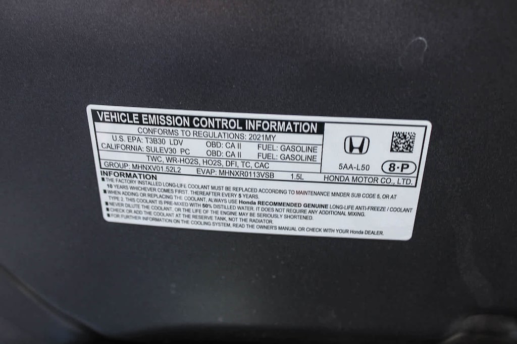 Cloth, 17 Alloy Wheels, 4-Wheel Disc Brakes, 8 Speakers, ABS brakes, Adaptive Cruise Control: Adaptive Cruise Control (ACC) with Low-Speed Follow, Air Conditioning, Alloy wheels, AM/FM radio: SiriusXM, Apple CarPlay/Android Auto, Auto High-beam Headlights, Automatic temperature control, Brake assist, Bumpers: body-color, Cloth Seat Trim, Delay-off headlights, Driver door bin, Driver vanity mirror, Dual front impact airbags, Dual front side impact airbags, Electronic Stability Control, Emergency communication system: HondaLink, Exterior Parking Camera Rear, Forward collision: Collision Mitigation Braking System (CMBS) + FCW mitigation, Four wheel independent suspension, Front anti-roll bar, Front Bucket Seats, Front Center Armrest, Front dual zone A/C, Front fog lights, Front reading lights, Fully automatic headlights, Heated door mirrors, Heated Front Bucket Seats, Heated front seats, Illuminated entry, Lane departure: Lane Keeping Assist System (LKAS) active, Leather Shift Knob, Low tire pressure warning, Occupant sensing airbag, Outside temperature display, Overhead airbag, Overhead console, Panic alarm, Passenger door bin, Passenger vanity mirror, Power door mirrors, Power driver seat, Power moonroof, Power steering, Power windows, Radio data system, Radio: 180-Watt AM/FM/HD/SiriusXM Audio System, Rear anti-roll bar, Rear seat center armrest, Rear window defroster, Remote keyless entry, Security system, Speed control, Speed-sensing steering, Speed-Sensitive Wipers, Split folding rear seat, Spoiler, Steering wheel mounted audio controls, Tachometer, Telescoping steering wheel, Tilt steering wheel, Traction control, Trip computer, and Variably intermittent wipers. Cloth. 1.5L I-4 DI DOHC Turbocharged CVT FWD