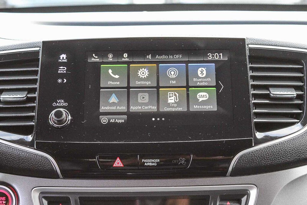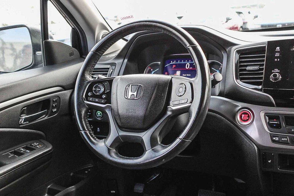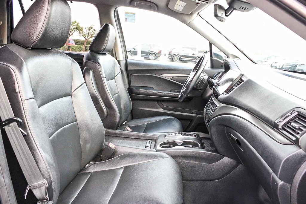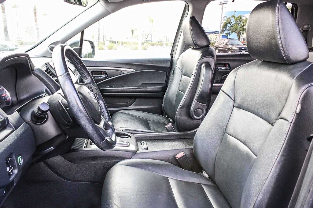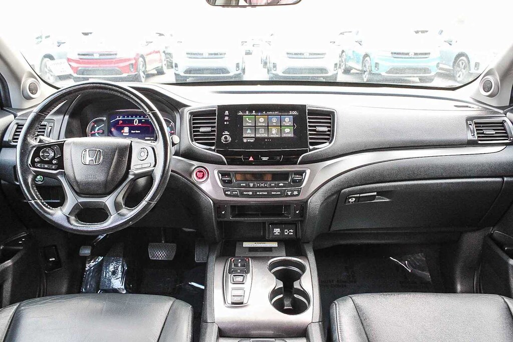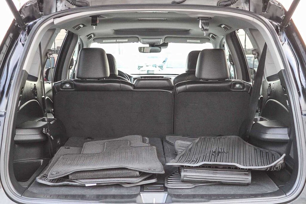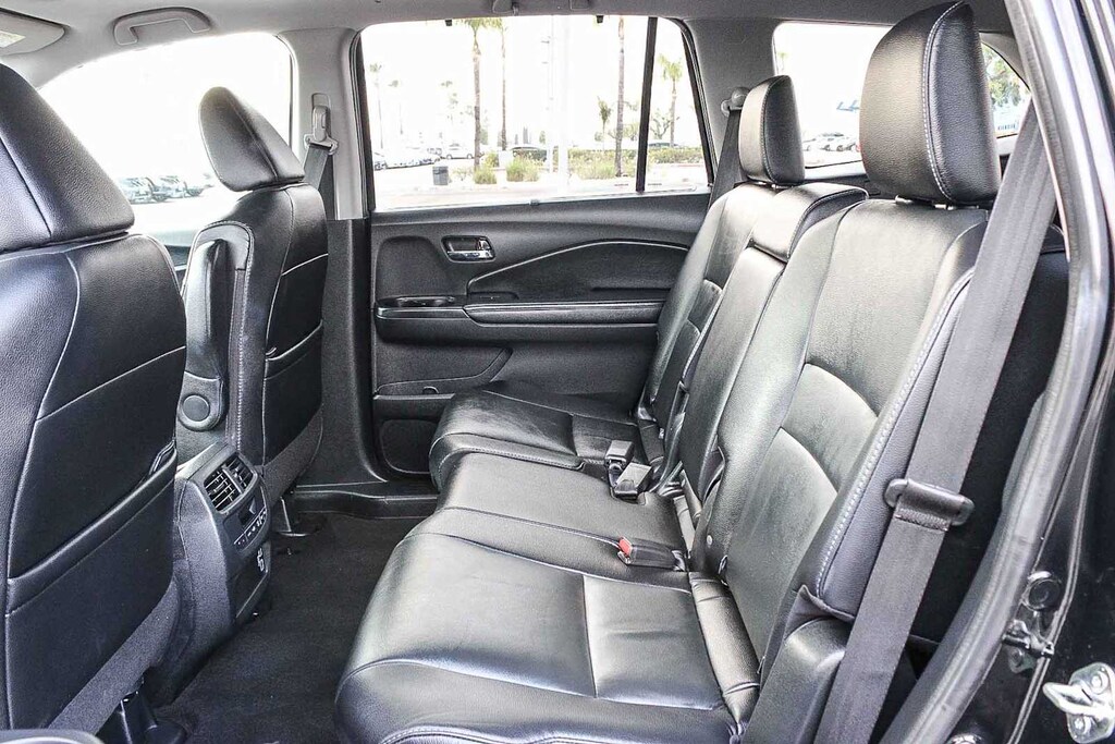 3rd row seats: split-bench, 4-Wheel Disc Brakes, 4.33 Axle Ratio, 7 Speakers, A/V remote: CabinControl, ABS brakes, Air Conditioning, Alloy wheels, AM/FM radio: SiriusXM, Apple CarPlay/Android Auto, Auto High-beam Headlights, Auto-dimming Rear-View mirror, Automatic temperature control, Blind Spot Information (BSI) System warning, Brake assist, Bumpers: body-color, Delay-off headlights, Driver door bin, Driver vanity mirror, Dual front impact airbags, Dual front side impact airbags, Electronic Stability Control, Emergency communication system: HondaLink Assist, Exterior Parking Camera Rear, Forward collision: Collision Mitigation Braking System (CMBS) + FCW mitigation, Four wheel independent suspension, Front anti-roll bar, Front Bucket Seats, Front Center Armrest, Front dual zone A/C, Front fog lights, Front reading lights, Fully automatic headlights, Garage door transmitter: HomeLink, Heated door mirrors, Heated Front Bucket Seats, Heated front seats, Illuminated entry, Lane departure: Lane Keeping Assist System (LKAS) active, Leather Seat Trim, Low tire pressure warning, Memory seat, Occupant sensing airbag, Outside temperature display, Overhead airbag, Overhead console, Panic alarm, Passenger door bin, Passenger vanity mirror, Power door mirrors, Power driver seat, Power Liftgate, Power moonroof, Power passenger seat, Power steering, Power windows, Radio data system, Radio: 215-Watt Audio System, Rear air conditioning, Rear anti-roll bar, Rear reading lights, Rear seat center armrest, Rear window defroster, Rear window wiper, Reclining 3rd row seat, Remote keyless entry, Roof rack: rails only, Security system, Speed control, Speed-sensing steering, Speed-Sensitive Wipers, Split folding rear seat, Spoiler, Steering wheel mounted audio controls, Tachometer, Telescoping steering wheel, Tilt steering wheel, Traction control, Trip computer, Turn signal indicator mirrors, Variably intermittent wipers, and Wheels: 20 Exclusive Black-Painted Alloy. 3.5L V6 24V SOHC i-VTEC 9-Speed Automatic FWD