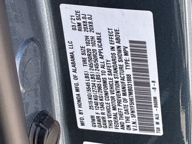 Modern Steel Metallic 2021 Honda Pilot Touring 7 Passenger FWD 9-Speed Automatic 3.5L V6 24V SOHC i-VTEC
