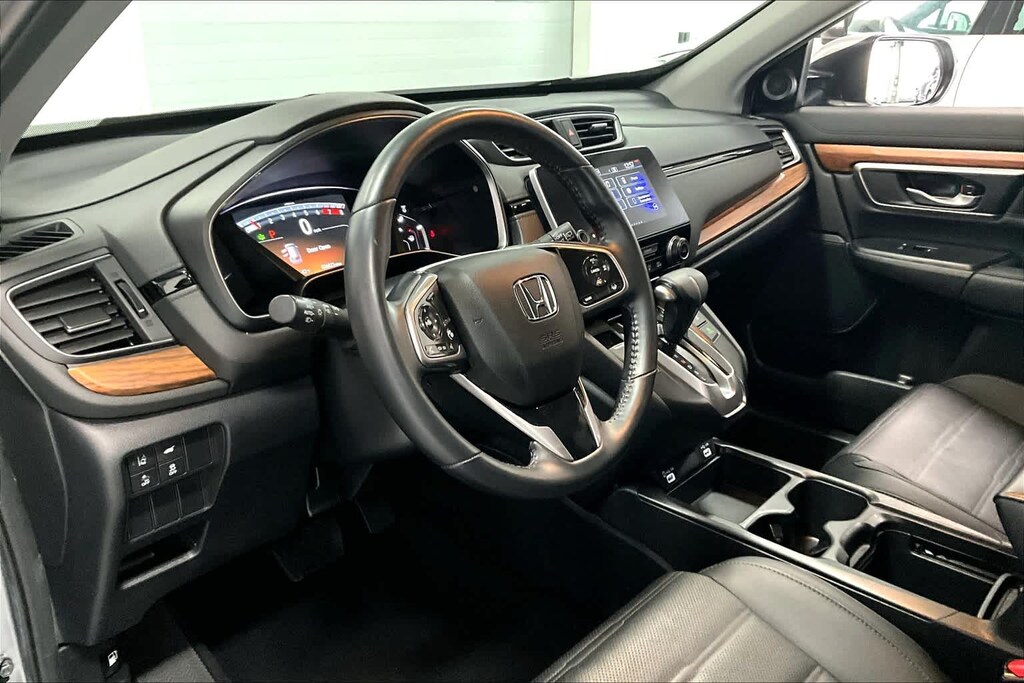 CR-V EX-L is nicely equipped with AWD, 18 Alloy Wheels, 4-Wheel Disc Brakes, 5.64 Axle Ratio, 8 Speakers, ABS brakes, Adaptive Cruise Control: Adaptive Cruise Control (ACC) with Low-Speed Follow, Air Conditioning, Alloy wheels, AM/FM radio: SiriusXM, Apple CarPlay/Android Auto, Auto High-beam Headlights, Auto-dimming Rear-View mirror, Automatic temperature control, Blind Spot Information (BSI) System warning, Brake assist, Bumpers: body-color, Compass, Delay-off headlights, Driver door bin, Driver vanity mirror, Dual front impact airbags, Dual front side impact airbags, Electronic Stability Control, Exterior Parking Camera Rear, Forward collision: Collision Mitigation Braking System (CMBS) + FCW mitigation, Four wheel independent suspension, Front anti-roll bar, Front Bucket Seats, Front Center Armrest, Front dual zone A/C, Front fog lights, Front reading lights, Garage door transmitter: HomeLink, Heated door mirrors, Heated Front Bucket Seats, Heated front seats, Illuminated entry, Leather Seat Trim, Leather Shift Knob, Low tire pressure warning, Memory seat, Occupant sensing airbag, Outside temperature display, Overhead airbag, Overhead console, Panic alarm, Passenger door bin, Passenger vanity mirror, Power door mirrors, Power driver seat, Power Liftgate, Power moonroof, Power passenger seat, Power steering, Power windows, Radio data system, Radio: 180-Watt AM/FM/HD/SiriusXM Audio System, Rear anti-roll bar, Rear seat center armrest, Rear window defroster, Rear window wiper, Remote keyless entry, Security system, Speed control, Speed-sensing steering, Speed-Sensitive Wipers, Split folding rear seat, Spoiler, Steering wheel mounted audio controls, Tachometer, Telescoping steering wheel, Tilt steering wheel, Traction control, Trip computer, Turn signal indicator mirrors, and Variably intermittent wipers.