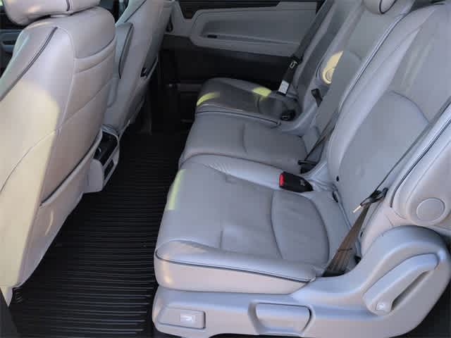 This 2022 Honda Odyssey Elite in Modern Steel Metallic, features 11 Speakers, 3.61 Axle Ratio, 3rd row seats: split-bench, 4-Wheel Disc Brakes, A/V remote: CabinControl, ABS brakes, Adaptive Cruise Control: Adaptive Cruise Control (ACC) with Low-Speed Follow, Air Conditioning, Alloy wheels, AM/FM radio: SiriusXM, Anti-whiplash front head restraints, Apple CarPlay/Android Auto, Auto High-beam Headlights, Auto-dimming door mirrors, Auto-dimming Rear-View mirror, Automatic temperature control, Blind Spot Information (BSI) System warning, Brake assist, Bumpers: body-color, CD player, Compass, Delay-off headlights, Driver door bin, Driver vanity mirror, Drivers Seat Mounted Armrest, Dual front impact airbags, Dual front side impact airbags, DVD-Audio, Electronic Stability Control, Emergency communication system: HondaLink, Exterior Parking Camera Rear, Forward collision: Collision Mitigation Braking System (CMBS) + FCW mitigation, Four wheel independent suspension, Front anti-roll bar, Front Bucket Seats, Front dual zone A/C, Front fog lights, Front reading lights, Fully automatic headlights, Garage door transmitter: HomeLink, Headphones, Heated & Ventilated Front Bucket Seats, Heated door mirrors, Heated front seats, Heated steering wheel, Illuminated entry, Knee airbag, Lane departure: Lane Keeping Assist System (LKAS) active, Leather Seat Trim, Leather steering wheel, Low tire pressure warning, Memory seat, Navigation system: Honda Satellite-Linked Navigation System, Occupant sensing airbag, Outside temperature display, Overhead airbag, Overhead console, Panic alarm, Passenger door bin, Passenger seat mounted armrest, Passenger vanity mirror, Power door mirrors, Power driver seat, Power Liftgate, Power moonroof, Power passenger seat, Power steering, Power windows, Radio data system, Radio: 550-Watt AM/FM/HD Premium Audio System, Rain sensing wipers, Rear air conditioning, Rear anti-roll bar, Rear audio controls, Rear reading lights, Rear seat center armrest, Rear window defroster, Rear window wiper, Reclining 3rd row seat, Remote keyless entry, Security system, Speed control, Speed-sensing steering, Speed-Sensitive Wipers, Split folding rear seat, Spoiler, Steering wheel mounted audio controls, Tachometer, Telescoping steering wheel, Tilt steering wheel, Traction control, Trip computer, Turn signal indicator mirrors, Variably intermittent wipers, Ventilated front seats, and Wheels: 19 Unique Machine-Finished Alloy:
