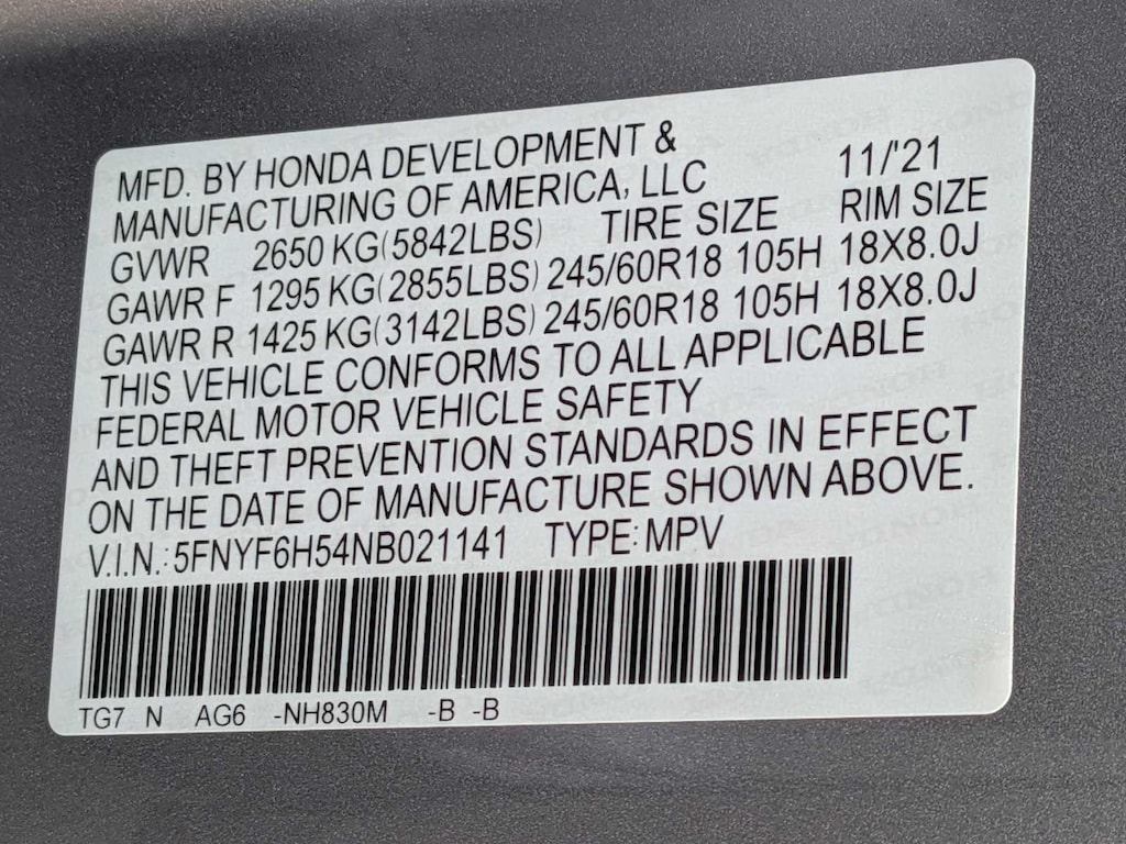 2022 Honda Pilot EX-L AWD 19/26 City/Highway MPG