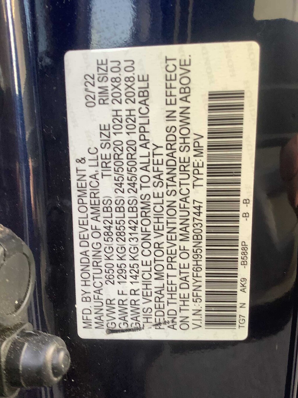 Blue 2022 Honda Pilot Touring 8 Passenger AWD 9-Speed Automatic AWD.