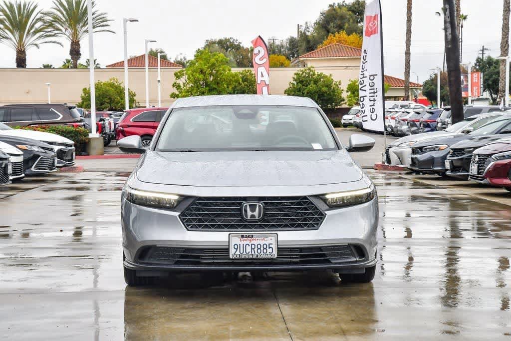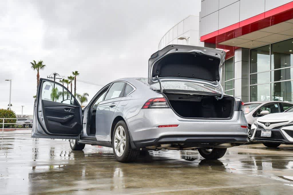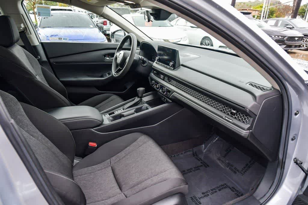 Clean CARFAX. Lunar Silver Metallic 2023 Honda Accord LX FWD CVT 1.5T I4 DOHC 16V Turbocharged VTEC 4 Speakers, 4-Wheel Disc Brakes, Adaptive Cruise Control: Adaptive Cruise Control (ACC) with Low-Speed Follow, Alloy wheels, Apple CarPlay/Android Auto, Automatic temperature control, Brake assist, Bumpers: body-color, Driver door bin, Driver vanity mirror, Dual front impact airbags, Dual front side impact airbags, Electronic Stability Control, Emergency communication system: HondaLink Assist, Exterior Parking Camera Rear, Fabric Seat Trim, Four wheel independent suspension, Front anti-roll bar, Front Bucket Seats, Front Center Armrest, Illuminated entry, Knee airbag, Lane departure: Lane Keeping Assist System (LKAS) active, Occupant sensing airbag, Overhead airbag, Overhead console, Panic alarm, Passenger door bin, Passenger vanity mirror, Power door mirrors, Radio data system, Radio: 160-Watt AM/FM Audio System, Rear anti-roll bar, Rear seat center armrest, Rear side impact airbag, Remote keyless entry, Security system, Speed control, Speed-sensing steering, Speed-Sensitive Wipers, Steering wheel mounted audio controls, Telescoping steering wheel, Tilt steering wheel, Wheels: 17 x 7.5 Blade Silver.