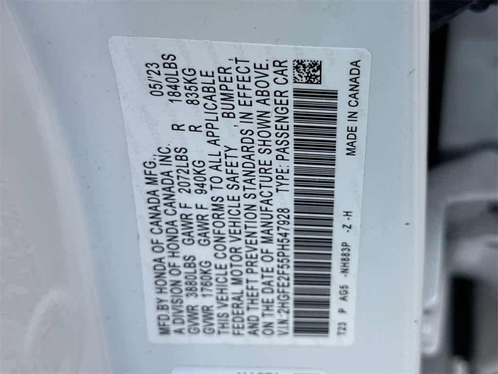 White 2023 Honda Civic Sport FWD CVT 2.0L I4 DOHC 16V i-VTEC
