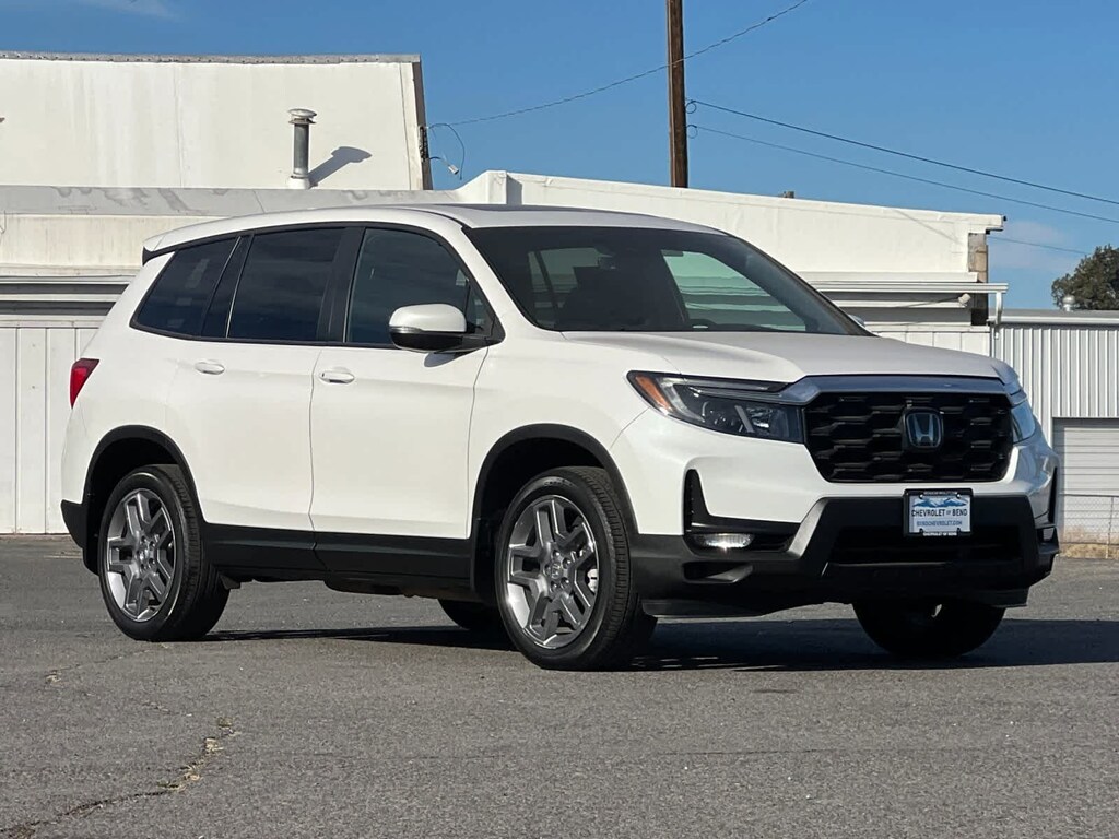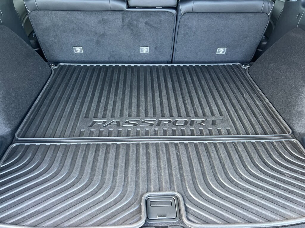 Platinum White Pearl 2023 Honda Passport EX-L AWD 9-Speed Automatic 3.5L V6 24V SOHC i-VTEC A/V remote: CabinControl, Power Liftgate, Power moonroof, Spoiler.