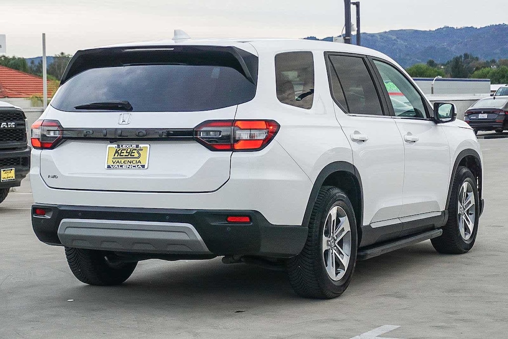 Platinum White Pearl 2023 Honda Pilot EX-L 8 Passenger AWD 10-Speed Automatic 3.5L V6 DOHC 24V Local Trade-In with service records, Just Serviced, Extremely Clean Vehicle, Tires in Great Condition, Professionally Detailed, Non-Smoker, Complimentary Maintenance for one (1) year or 15,000 miles, whichever occurs first, AWD, Adaptive Cruise Control: Adaptive Cruise Control (ACC) with Low-Speed Follow, Apple CarPlay/Android Auto, Blind Spot Information (BSI) System warning, Front dual zone A/C, Heated Front Bucket Seats, Lane departure: Lane Keeping Assist System (LKAS) active, Leather Seat Trim, Power Liftgate, Radio: 245-Watt Audio System, Wheels: 18 Machined Face Pewter Gray.