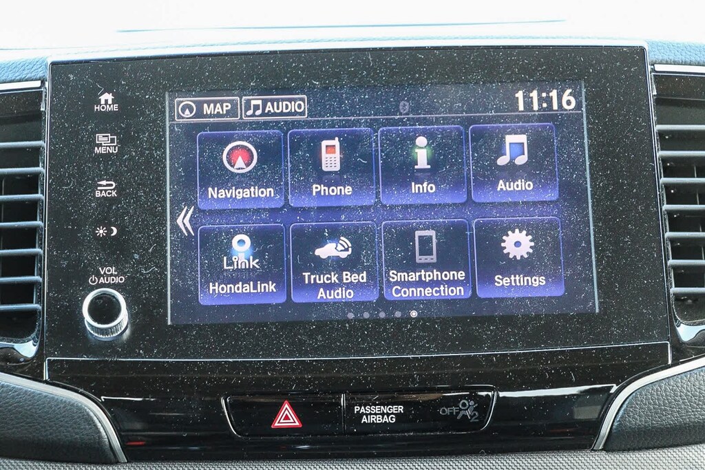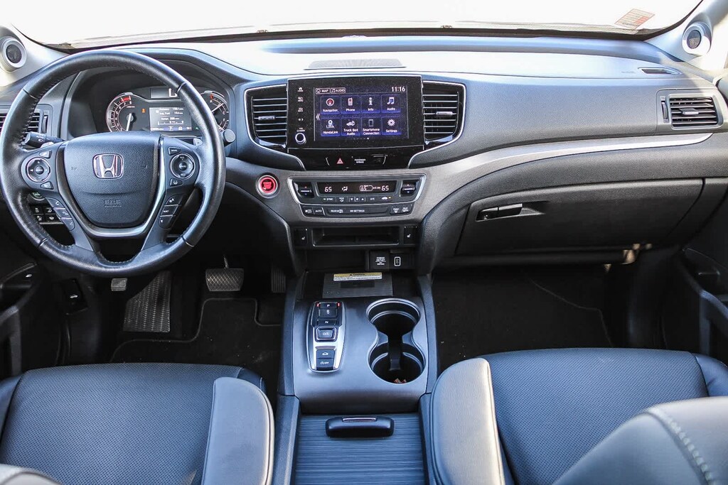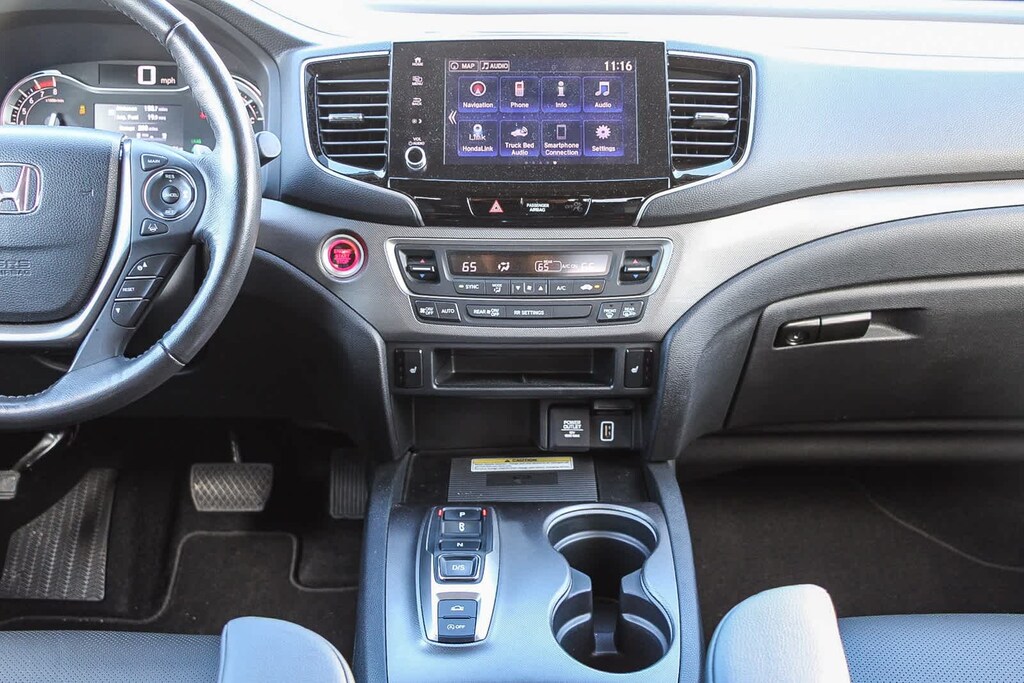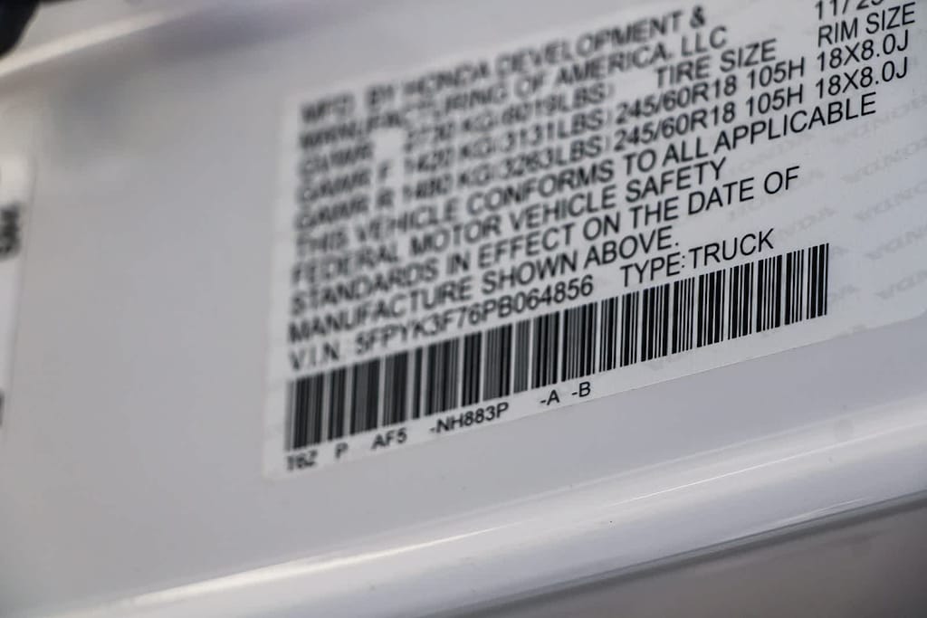 This 2023 Honda Ridgeline RTL-E is finished in the Platinum White Pearl exterior paint and Black Leather interior.