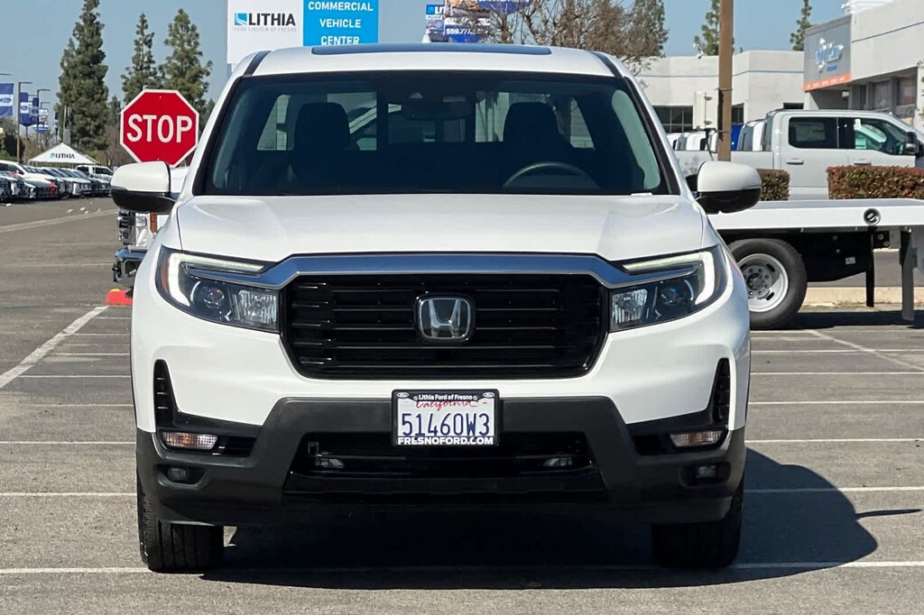 Lithia Ford and Lincoln of Fresno is pleased to offer this Platinum White Pearl 2023 Honda Ridgeline RTL-E for purchase, this vehicle is well equipped with many features including: Black w/Leather Seat Trim, Bluetoothî Hands-Free Link, Honda Satellite-Linked Navigation System, Navigation system: Honda Satellite-Linked Navigation System, Radio: 540-Watt Premium Audio System w/8 Speakers, SiriusXM, 4-Wheel Disc Brakes, 4.33 Axle Ratio, 8 Speakers, ABS brakes, Air Conditioning, Alloy wheels, AM/FM radio: SiriusXM, Apple CarPlay/Android Auto, Auto High-beam Headlights, Auto-dimming Rear-View mirror, Automatic temperature control, Blind Spot Information (BSI) System warning, Brake assist, Bumpers: body-color, Compass, Delay-off headlights, Driver door bin, Driver vanity mirror, Drivers Seat Mounted Armrest, Dual front impact airbags, Dual front side impact airbags, Electronic Stability Control, Exterior Parking Camera Rear, Four wheel independent suspension, Front anti-roll bar, Front Bucket Seats, Front dual zone A/C, Front fog lights, Front reading lights, Fully automatic headlights, Garage door transmitter: HomeLink, Heated door mirrors, Heated Front Bucket Seats, Heated front seats, Heated steering wheel, Illuminated entry, Leather Seat Trim, Low tire pressure warning, Memory seat, Occupant sensing airbag, Outside temperature display, Overhead airbag, Overhead console, Panic alarm, Passenger door bin, Passenger seat mounted armrest, Passenger vanity mirror, Power door mirrors, Power driver seat, Power moonroof, Power passenger seat, Power steering, Power windows, Radio data system, Rear air conditioning, Rear anti-roll bar, Rear reading lights, Rear seat center armrest, Rear step bumper, Rear window defroster, Remote keyless entry, Security system, Speed control, Speed-sensing steering, Split folding rear seat, Steering wheel mounted audio controls, Tachometer, Telescoping steering wheel, Tilt steering wheel, Traction control, Trip computer, Turn signal indicator mirrors, Variably intermittent wipers, and Wheels: 18 Exclusive Pewter Gray Alloy. AWD 3.5L V6 SOHC i-VTEC 24V 9-Speed Automatic RTL-E