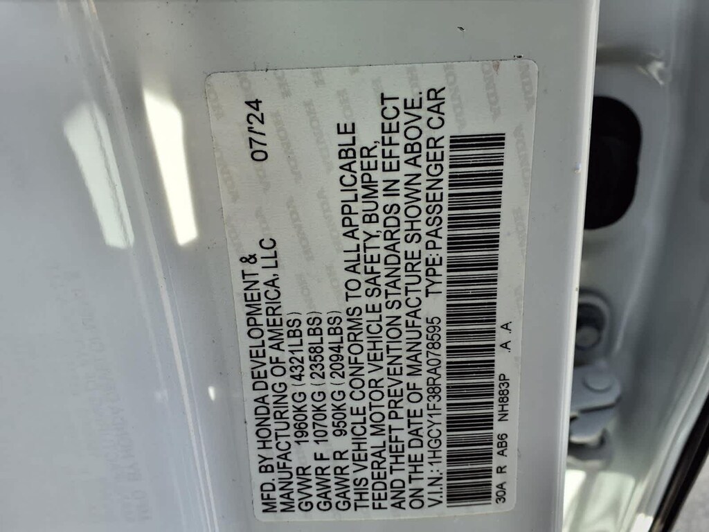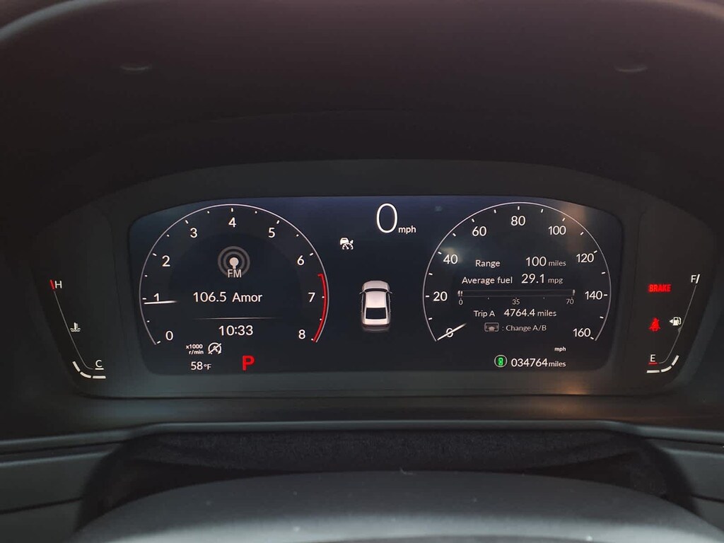 Gray Cloth, 4-Wheel Disc Brakes, 8 Speakers, ABS brakes, Adaptive Cruise Control: Adaptive Cruise Control (ACC) with Low-Speed Follow, Air Conditioning, Alloy wheels, AM/FM radio, Apple CarPlay/Android Auto, Auto High-beam Headlights, Auto-dimming Rear-View mirror, Automatic temperature control, Blind Spot Information (BSI) System warning, Brake assist, Bumpers: body-color, Compass, Delay-off headlights, Driver door bin, Driver vanity mirror, Dual front impact airbags, Dual front side impact airbags, Electronic Stability Control, Emergency communication system: HondaLink Assist, Exterior Parking Camera Rear, Fabric Seat Trim, Four wheel independent suspension, Front anti-roll bar, Front Bucket Seats, Front Center Armrest, Front dual zone A/C, Front reading lights, Fully automatic headlights, Heated Front Bucket Seats, Heated front seats, Illuminated entry, Knee airbag, Lane departure: Lane Keeping Assist System (LKAS) active, Low tire pressure warning, Occupant sensing airbag, Outside temperature display, Overhead airbag, Overhead console, Panic alarm, Passenger door bin, Passenger vanity mirror, Power door mirrors, Power driver seat, Power moonroof, Power steering, Power windows, Radio data system, Radio: 180-Watt AM/FM Audio System, Rear anti-roll bar, Rear reading lights, Rear seat center armrest, Rear side impact airbag, Rear window defroster, Remote keyless entry, Security system, Speed control, Speed-sensing steering, Speed-Sensitive Wipers, Split folding rear seat, Steering wheel mounted audio controls, Tachometer, Telescoping steering wheel, Tilt steering wheel, Traction control, Trip computer, Variably intermittent wipers, Wheels: 17 x 7.5 Pewter Gray, Gray Cloth.