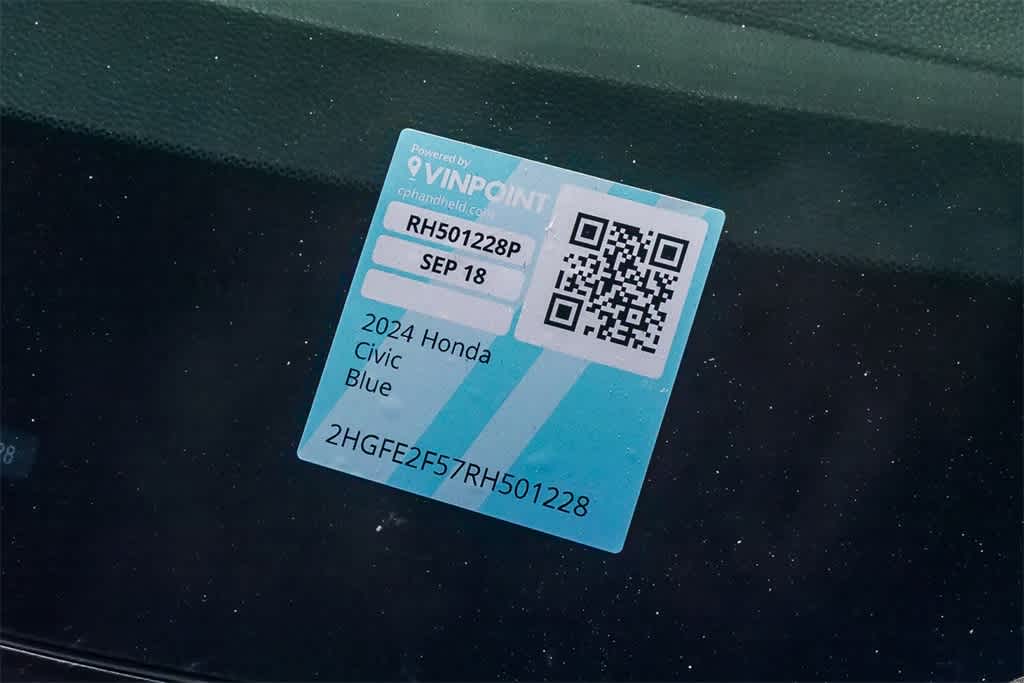 Thank you for choosing DCH Honda of Oxnard! CARFAX One-Owner. Aegean Blue Metallic 2024 Honda Civic Sport FWD CVT 2.0L I4 DOHC 16V i-VTEC NON-SMOKER!, CLEAN CARFAX!, OIL CHANGED, Civic Sport, 4D Sedan, 2.0L I4 DOHC 16V i-VTEC, FWD, ABS brakes, Air Conditioning, AM/FM radio, Apple CarPlay/Android Auto, Electronic Stability Control, Exterior Parking Camera Rear, Fully automatic headlights, Illuminated entry, Steering wheel mounted audio controls, Traction control.