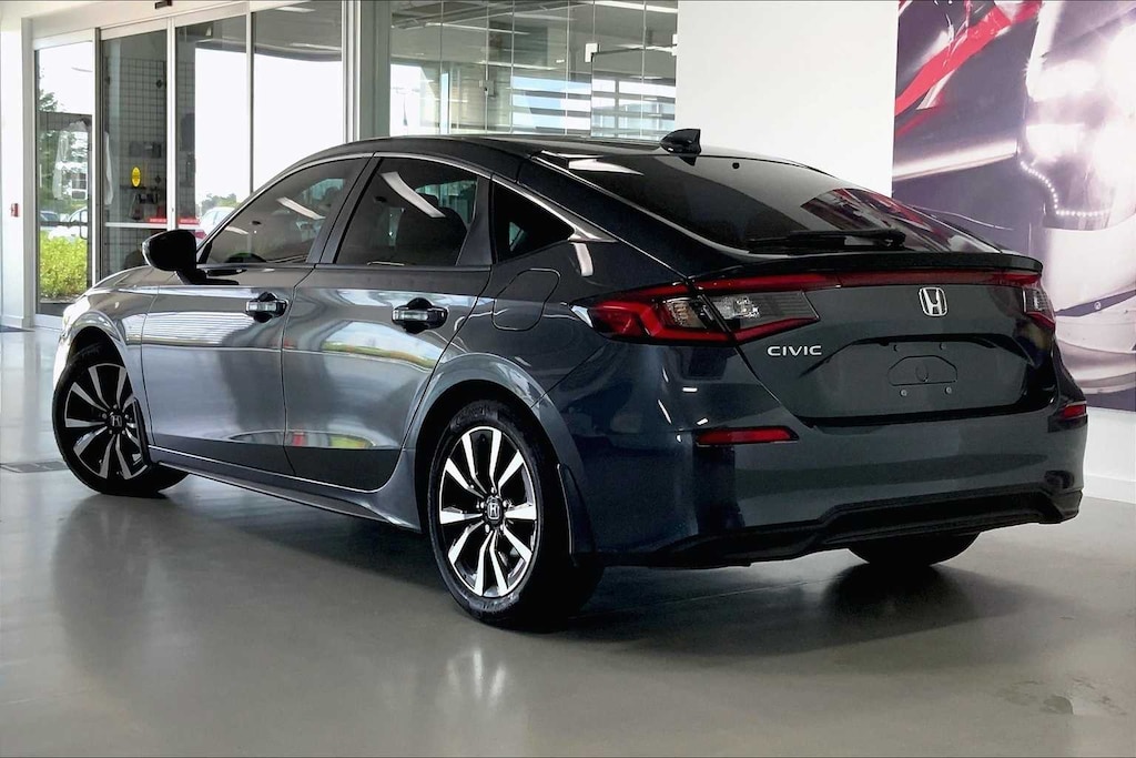 Civic EX-L is nicely equipped with Black Leather, 17 Alloy Wheels, 4-Wheel Disc Brakes, 8 Speakers, ABS brakes, Adaptive Cruise Control: Adaptive Cruise Control (ACC) with Low-Speed Follow, Air Conditioning, Alloy wheels, AM/FM radio, Apple CarPlay/Android Auto, Auto High-beam Headlights, Automatic temperature control, Blind Spot Information (BSI) System warning, Brake assist, Bumpers: body-color, Delay-off headlights, Driver door bin, Driver vanity mirror, Dual front impact airbags, Dual front side impact airbags, Electronic Stability Control, Emergency communication system: HondaLink, Exterior Parking Camera Rear, Four wheel independent suspension, Front anti-roll bar, Front Bucket Seats, Front Center Armrest, Front dual zone A/C, Front reading lights, Fully automatic headlights, Heated door mirrors, Heated Front Bucket Seats, Heated front seats, Illuminated entry, Knee airbag, Lane departure: Lane Keeping Assist System (LKAS) active, Leather Shift Knob, Leather steering wheel, Leather-Trimmed Seating Surfaces, Low tire pressure warning, Occupant sensing airbag, Outside temperature display, Overhead airbag, Panic alarm, Passenger door bin, Passenger vanity mirror, Power door mirrors, Power driver seat, Power moonroof, Power steering, Power windows, Radio data system, Radio: 180-Watt Audio System, Rear anti-roll bar, Rear seat center armrest, Rear side impact airbag, Rear window defroster, Rear window wiper, Remote keyless entry, Security system, Speed control, Speed-sensing steering, Split folding rear seat, Steering wheel mounted audio controls, Tachometer, Telescoping steering wheel, Tilt steering wheel, Traction control, Trip computer, Variably intermittent wipers, and Voltmeter.