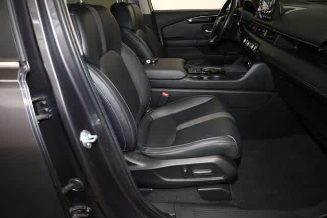 Modern Steel Metallic exterior and Black interior, EX-L 8 Passenger trim. FUEL EFFICIENT 25 MPG Hwy/19 MPG City! 3rd Row Seat, Heated Leather Seats, Rear Air, Alloy Wheels, All Wheel Drive, Power Liftgate.