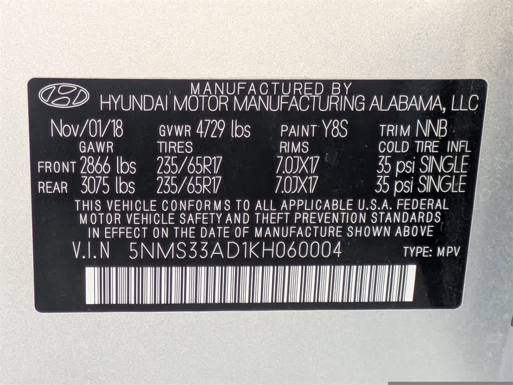 2019 Hyundai Santa Fe SEL FWD 2.4L I4 DGI DOHC 16V LEV3-ULEV70 185hp 8-Speed Automatic with SHIFTRONIC