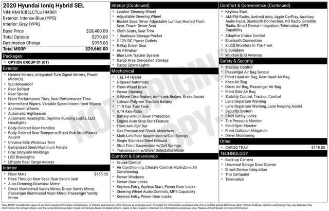 Sunroof, Heated Driver Seat, Back-Up Camera, Hybrid, Satellite Radio Hyundai SEL with Intense Blue exterior and Gray interior features a 4 Cylinder Engine with 139 HP at 5700 RPM*.