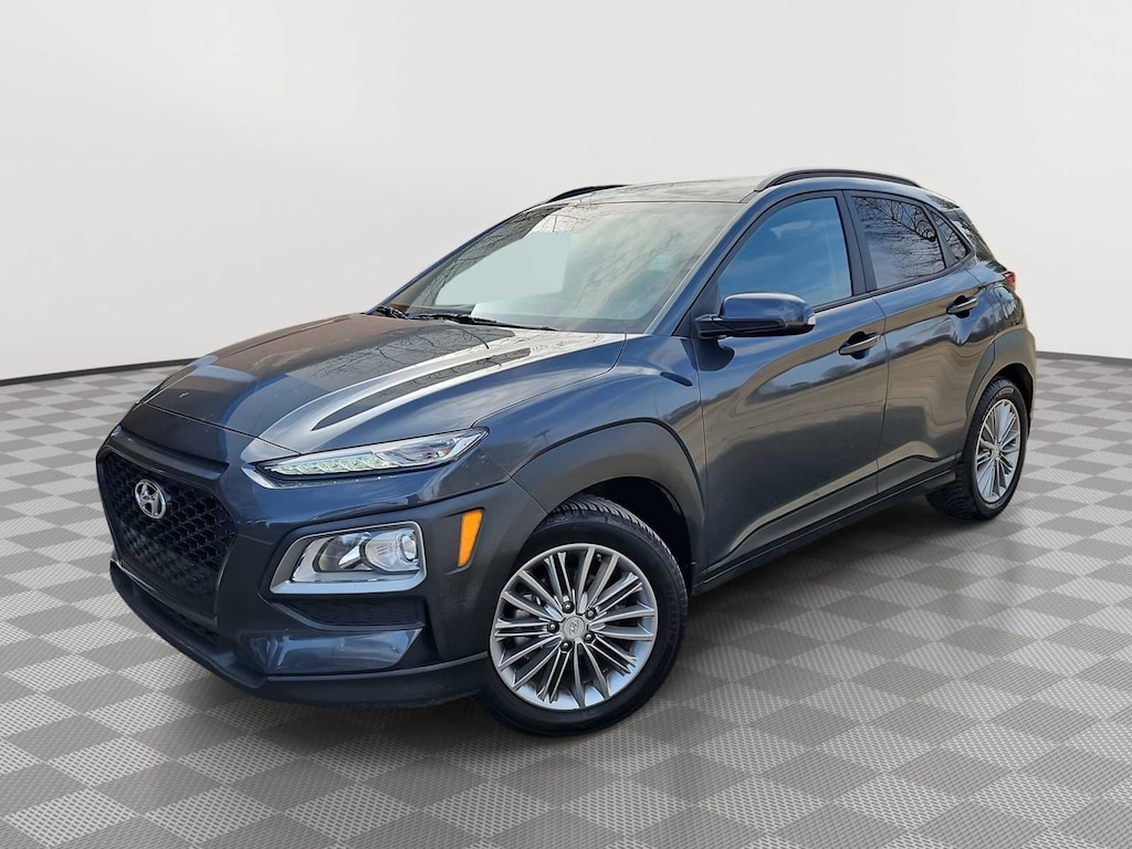 Recent Arrival! CARFAX One-Owner. Clean CARFAX. Thunder Gray This Kona SEL is nicely equipped with Option Group 01, 3.510 Axle Ratio, 4-Wheel Disc Brakes, 6 Speakers, ABS brakes, Air Conditioning, Alloy wheels, AM/FM radio: SiriusXM, Apple CarPlay & Android Auto, Brake assist, Bumpers: body-color, Cargo Net, Carpeted Floor Mats, Cloth Seat Trim, Delay-off headlights, Driver door bin, Driver vanity mirror, Dual front impact airbags, Dual front side impact airbags, Electronic Stability Control, Exterior Parking Camera Rear, Front anti-roll bar, Front Bucket Seats, Front Center Armrest, Front reading lights, Front wheel independent suspension, Fully automatic headlights, Heated door mirrors, Heated Front Bucket Seats, Heated front seats, Illuminated entry, Leather Shift Knob, Leather steering wheel, Low tire pressure warning, Mudguards, Occupant sensing airbag, Outside temperature display, Overhead airbag, Overhead console, Panic alarm, Passenger door bin, Passenger vanity mirror, Power door mirrors, Power steering, Power windows, Radio: AM/FM/MP3/HD Radio/SiriusXM Audio System, Rear Bumper Applique, Rear seat center armrest, Rear window defroster, Rear window wiper, Remote keyless entry, Reversible Cargo Tray, Roof rack: rails only, Security system, Speed control, Speed-sensing steering, Split folding rear seat, Spoiler, Steering wheel mounted audio controls, Tachometer, Telescoping steering wheel, Tilt steering wheel, Traction control, Trip computer, Turn signal indicator mirrors, Variably intermittent wipers, and Wheels: 17 x 7.0J Alloy. Price does not include licensing costs, registration fees, taxes and dealer doc fee of $899.50 which are to be paid by the consumer. Mileage is EPA Estimated.