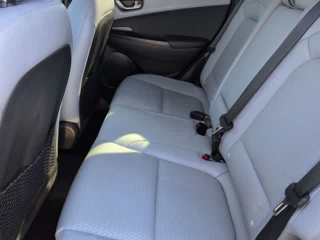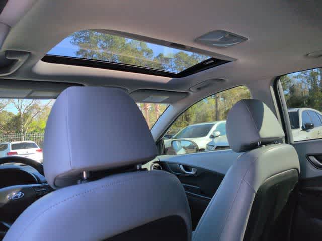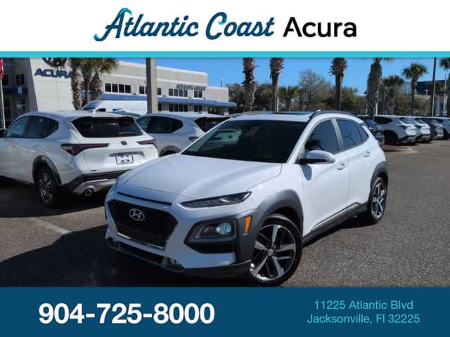 This 2021 Hyundai Kona Limited in Lunar White, features Cargo Package (Cargo Net and Cargo Tray), Option Group 01, 3.579 Axle Ratio, 4-Wheel Disc Brakes, 8 Speakers, ABS brakes, Air Conditioning, Alloy wheels, AM/FM radio: SiriusXM, Apple CarPlay & Android Auto, Auto-dimming Rear-View mirror, Automatic temperature control, Brake assist, Bumpers: body-color, Carpeted Floor Mats, Delay-off headlights, Driver door bin, Driver vanity mirror, Dual front impact airbags, Dual front side impact airbags, Electronic Stability Control, Emergency communication system, Exterior Parking Camera Rear, First Aid Kit, Front & Rear Mudguards, Front anti-roll bar, Front Bucket Seats, Front Center Armrest, Front fog lights, Front reading lights, Front wheel independent suspension, Fully automatic headlights, Garage door transmitter: HomeLink, Heated door mirrors, Heated Front Bucket Seats, Heated front seats, Illuminated entry, Leather Seat Trim, Leather Shift Knob, Leather steering wheel, Low tire pressure warning, Occupant sensing airbag, Outside temperature display, Overhead airbag, Overhead console, Panic alarm, Passenger door bin, Passenger vanity mirror, Power door mirrors, Power driver seat, Power moonroof, Power steering, Power windows, Radio: AM/FM/MP3/HD Radio/SiriusXM Audio System, Rear Bumper Applique, Rear seat center armrest, Rear window defroster, Rear window wiper, Remote keyless entry, Roof rack: rails only, Security system, Speed control, Speed-sensing steering, Split folding rear seat, Spoiler, Steering wheel mounted audio controls, Tachometer, Telescoping steering wheel, Tilt steering wheel, Traction control, Trip computer, Turn signal indicator mirrors, Variably intermittent wipers, Wheel Locks, and Wheels: 18 x 7.5J Alloy: