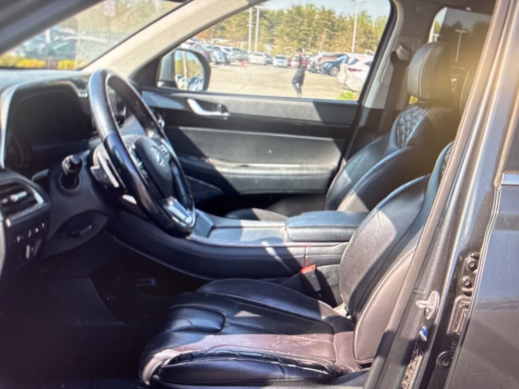 Steel Graphite 2021 Hyundai Palisade Limited AWD 8-Speed Automatic with SHIFTRONIC V6 12 Speakers, 3.648 Axle Ratio, 3rd row seats: split-bench, 4-Wheel Disc Brakes, ABS brakes, Air Conditioning, Alloy wheels, AM/FM radio: SiriusXM, Apple CarPlay & Android Auto, Auto High-beam Headlights, Auto-dimming Rear-View mirror, Auto-leveling suspension, Automatic temperature control, Brake assist, Bumper Applique, Bumpers: body-color, Cargo Block, Cargo Cover/Screen, Cargo Net, Cargo Package, Cargo Tray, Carpeted Floor Mats, Compass, Delay-off headlights, Driver door bin, Driver vanity mirror, Dual front impact airbags, Dual front side impact airbags, Electronic Stability Control, Emergency communication system: Blue Link Connected Car Service (3-year complimentary subscription), First Aid Kit, Four wheel independent suspension, Front anti-roll bar, Front Bucket Seats, Front Center Armrest, Front dual zone A/C, Front reading lights, Fully automatic headlights, Garage door transmitter: HomeLink, harman/kardonî Speakers, Heads-Up Display, Heated & Ventilated Front Bucket Seats, Heated door mirrors, Heated front seats, Heated rear seats, Heated steering wheel, Illuminated entry, Knee airbag, Low tire pressure warning, Memory seat, Mudguards, Navigation System, Occupant sensing airbag, Option Group 01, Outside temperature display, Overhead airbag, Overhead console, Panic alarm, Passenger door bin, Passenger vanity mirror, Power door mirrors, Power driver seat, Power Liftgate, Power moonroof, Power passenger seat, Power steering, Power windows, Premium Nappa Leather Seat Trim, Radio data system, Radio: AM/FM/MP3 Premium Audio System, Rain sensing wipers, Rear air conditioning, Rear anti-roll bar, Rear reading lights, Rear window defroster, Rear window wiper, Reclining 3rd row seat, Remote keyless entry, Security system, Speed control, Speed-sensing steering, Split folding rear seat, Spoiler, Steering wheel mounted audio controls, Tachometer, Telescoping steering wheel, Tilt steering wheel, Traction control, Trip computer, Turn signal indicator mirrors, Variably intermittent wipers, Ventilated front seats, Ventilated rear seats, Wheels: 20 x 7.5J Split 5-Spoke Machined Alloy.