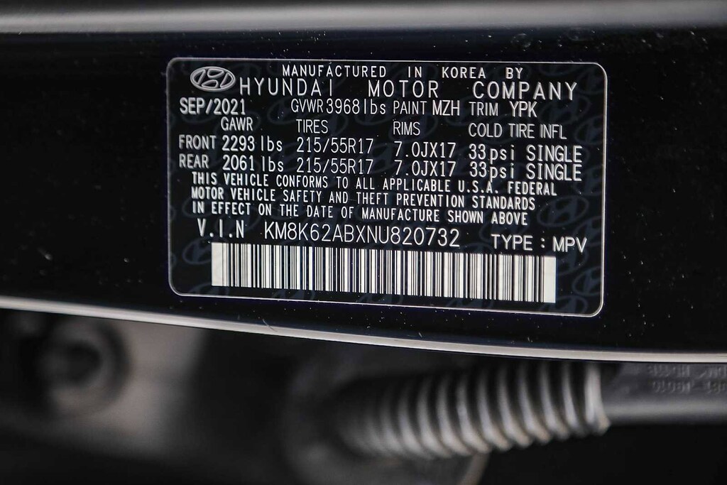 Ultra Black Pearl 2022 Hyundai Kona SEL FWD CVT 2.0L I4 MPI DOHC 16V LEV3-ULEV70 147hp