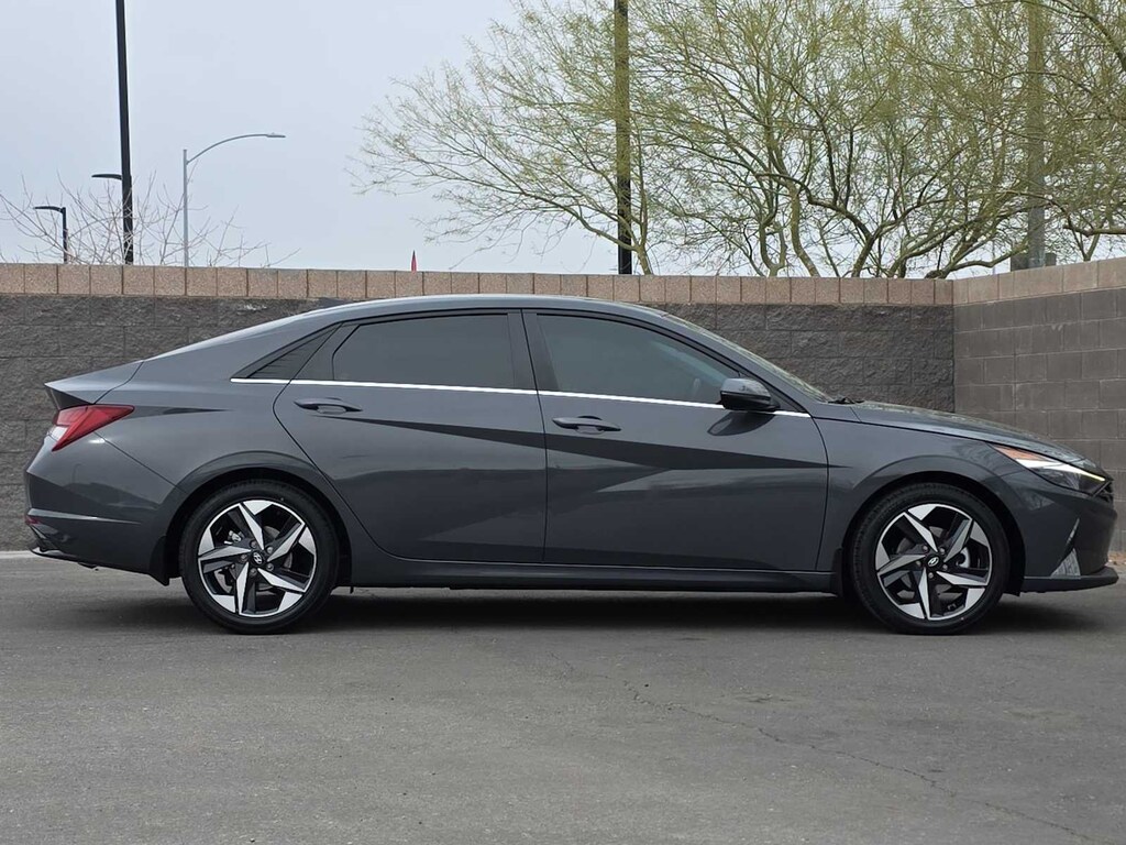 Our One Owner 2023 Hyundai Elantra Hybrid Limited Sedan in Ecotronic Gray helps you save fuel while you spend your time in comfort! Motivated by a 1.6 Liter 4 Cylinder and an Electric Motor that offer a combined 139hp to a 6 Speed EcoShift Double-Clutch Automatic transmission for confident performance and easy efficiency. In fact, this Front Wheel Drive sedan sees nearly 52mpg on the highway, and its easy to handle in the city, too. Aerodynamic and attractive, our Elantra rides in style with a dark-chrome grille, a power sunroof, LED lighting, a hands-free trunk, bold alloy wheels, and heated power mirrors with built-in turn signals.