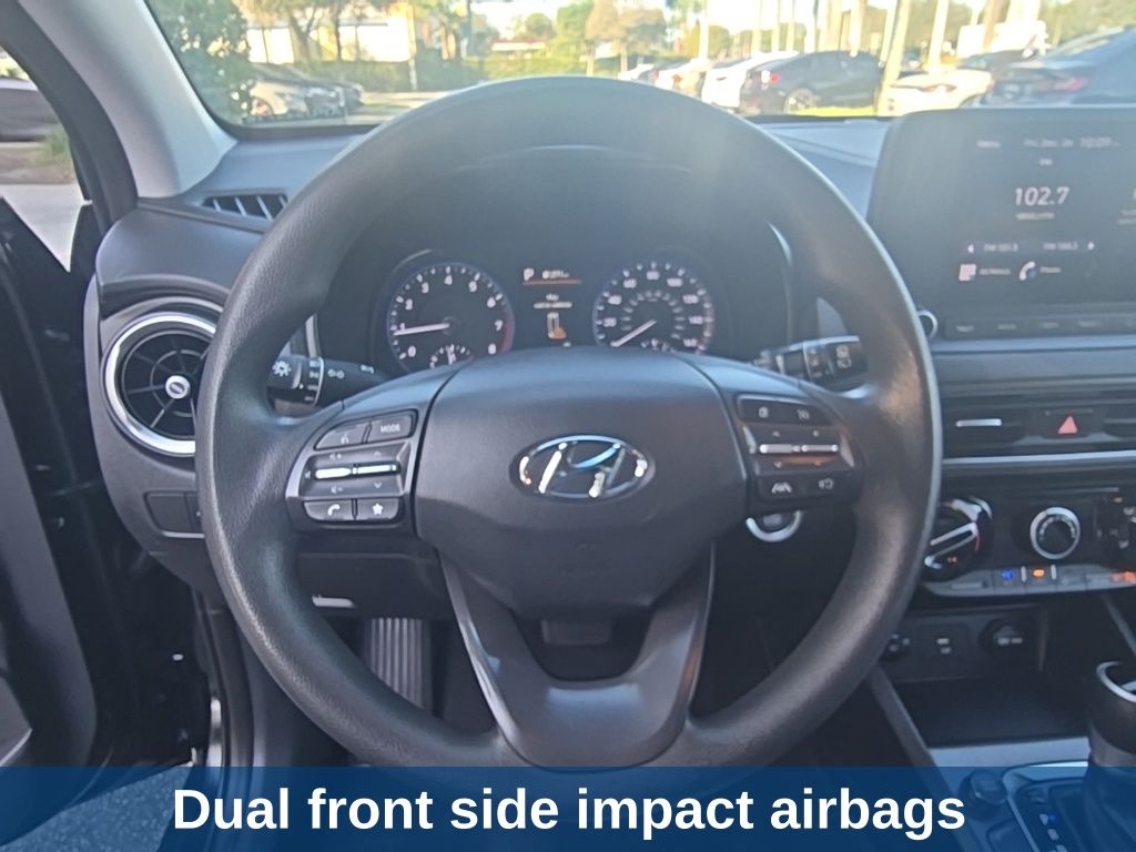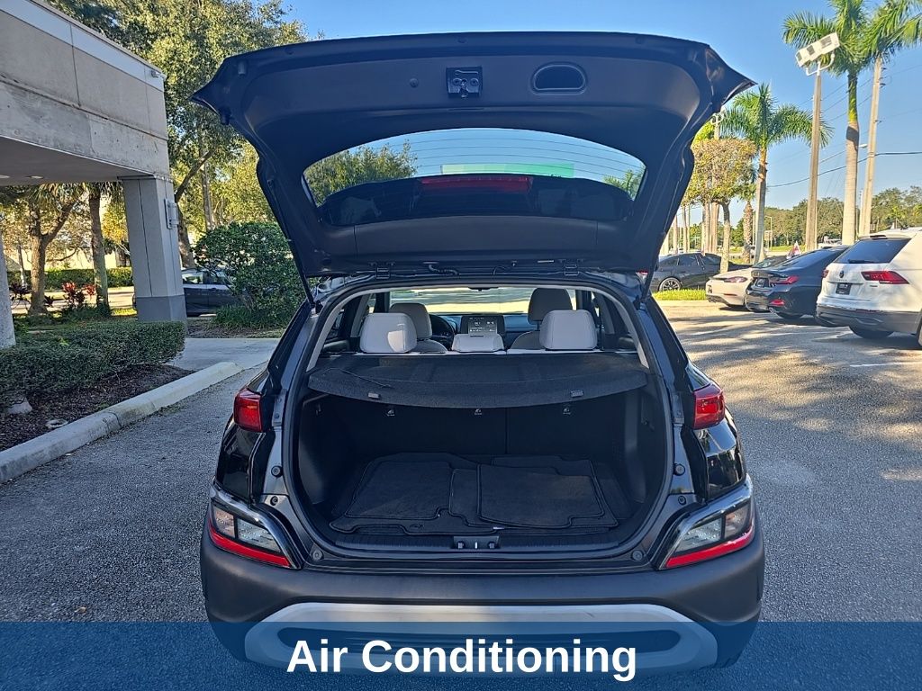 This Kona is well equipped with Option Group 01, Kona SEL, 4D Sport Utility, 2.0L I4 DOHC Dual CVVT, CVT, FWD, Ultra Black Pearl, Gray Cloth, 17" x 7.0J Alloy Wheels, 4-Wheel Disc Brakes, 5.715 Axle Ratio, 6 Speakers, ABS brakes, Air Conditioning, Alloy wheels, AM/FM radio: SiriusXM, Apple CarPlay & Android Auto, Brake assist, Bumpers: body-color, Cargo Net, Cargo Tray, Carpeted Floor Mats, Cloth Seat Trim, Delay-off headlights, Driver door bin, Driver vanity mirror, Dual front impact airbags, Dual front side impact airbags, Electronic Stability Control, Emergency communication system: Blue Link Connected Car Service (3-year complimentary subscription), Exterior Parking Camera Rear, Front anti-roll bar, Front Bucket Seats, Front Center Armrest, Front reading lights, Front wheel independent suspension, Fully automatic headlights, Heated door mirrors, Illuminated entry, Low tire pressure warning, Occupant sensing airbag, Outside temperature display, Overhead airbag, Overhead console, Panic alarm, Passenger door bin, Passenger vanity mirror, Power door mirrors, Power driver seat, Power steering, Power windows, Radio: AM/FM/HD/SiriusXM Audio System, Rear seat center armrest, Rear window defroster, Rear window wiper, Remote keyless entry, Roof Rack Cross Rails (DISC), Security system, Speed control, Speed-sensing steering, Split folding rear seat, Spoiler, Steering wheel mounted audio controls, Tachometer, Telescoping steering wheel, Tilt steering wheel, Traction control, Trip computer, Turn signal indicator mirrors, and Variably intermittent wipers. Price does not include $1,199 predelivery service fee, tax, title, or license. Optional equipment and accessories available, see dealer for details. *Some of our pre-owned vehicles may be subject to unrepaired safety recalls. Check for a vehicle's unrepaired recalls by VIN at http://vinrcl.safercar.gov/vin.