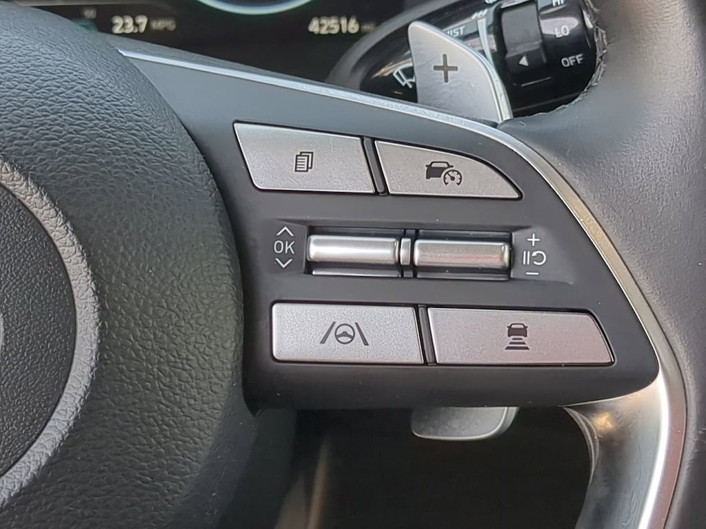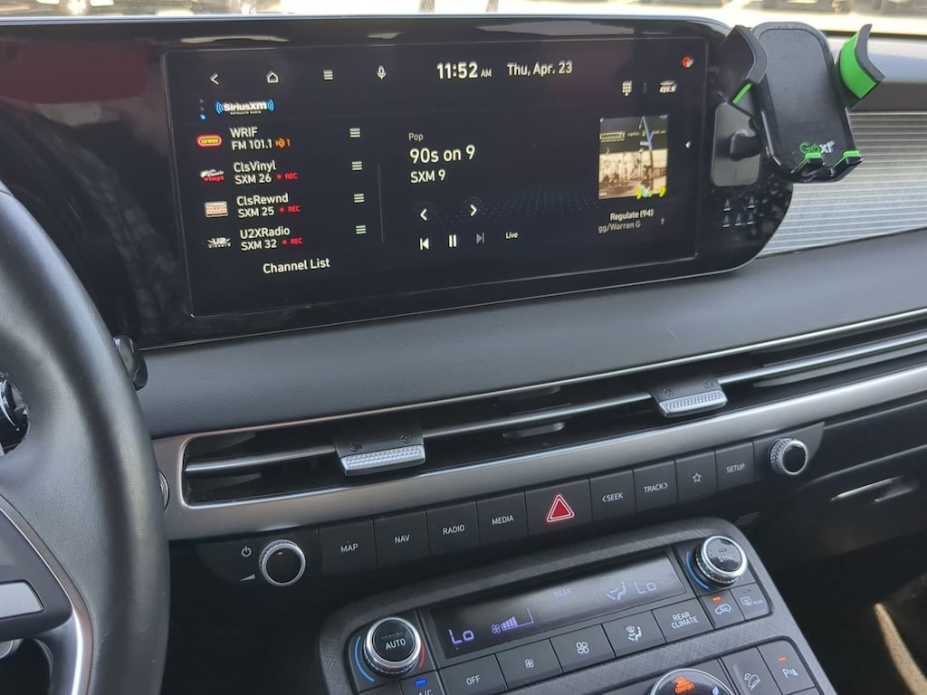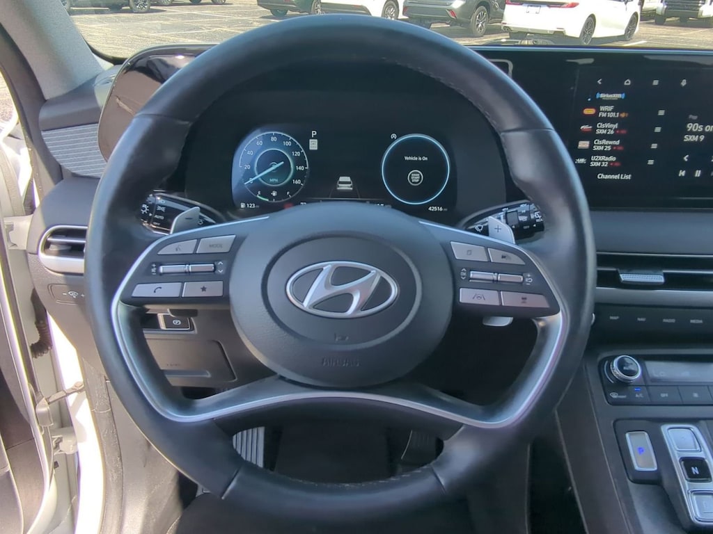 Step inside and be captivated by the Palisade's luxurious interior. The Leather Seat Trim, Heated & Ventilated Front Bucket Seats, and Heated Rear Seats create an unparalleled level of comfort, while the Panoramic Sunroof floods the cabin with natural light. The advanced technology features, including the Navigation System, Apple CarPlay & Android Auto, and Heads-Up Display, keep you connected and informed on every journey.