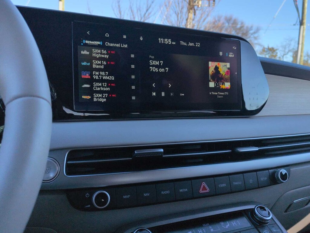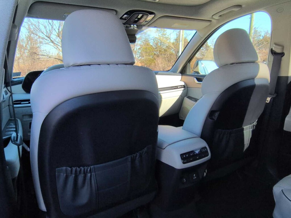 Option Group 01, 3rd row seats: split-bench, Apple CarPlay & Android Auto, Exterior Parking Camera Rear, Front Bucket Seats, Heads-Up Display, Heated & Ventilated Front Bucket Seats, Heated front seats, Heated rear seats, Leather Seat Trim, Memory seat, Navigation System, Power Liftgate, Power moonroof, Power passenger seat, Reclining 3rd row seat, Split folding rear seat, Spoiler, Steering wheel mounted audio controls, Ventilated front seats, Ventilated rear seats, Wheels: 20 x 7.5J Alloy, 12 Speakers, 3.648 Axle Ratio, 4-Wheel Disc Brakes, ABS brakes, Air Conditioning, Alloy wheels, AM/FM radio: SiriusXM, Auto High-beam Headlights, Auto-dimming door mirrors, Auto-dimming Rear-View mirror, Auto-leveling suspension, Automatic temperature control, Brake assist, Bumpers: body-color, Cargo Cover/Screen, Cargo Net, Cargo Tray, Carpeted Floor Mats, Compass, Delay-off headlights, Driver door bin, Driver vanity mirror, Dual front impact airbags, Dual front side impact airbags, Electronic Stability Control, Emergency communication system: Blue Link Connected Car Service (3-year complimentary subscription), Four wheel independent suspension, Front anti-roll bar, Front Center Armrest, Front dual zone A/C, Front reading lights, Fully automatic headlights, Garage door transmitter: HomeLink, harman/kardonî Speakers, Heated door mirrors, Heated steering wheel, Illuminated entry, Knee airbag, Low tire pressure warning, Occupant sensing airbag, Outside temperature display, Overhead airbag, Overhead console, Panic alarm, Passenger door bin, Passenger vanity mirror, Power door mirrors, Power driver seat, Power steering, Power windows, Radio data system, Radio: AM/FM/MP3 Premium Audio System, Rain sensing wipers, Rear air conditioning, Rear anti-roll bar, Rear audio controls, Rear Bumper Applique, Rear reading lights, Rear side impact airbag, Rear window defroster, Rear window wiper, Remote keyless entry, Security system, Speed control, Speed-sensing steering, Splash Trim, Tachometer, Telescoping steering wheel, Tilt steering wheel, Traction control, Trip computer, Turn signal indicator mirrors, and Variably intermittent wipers.